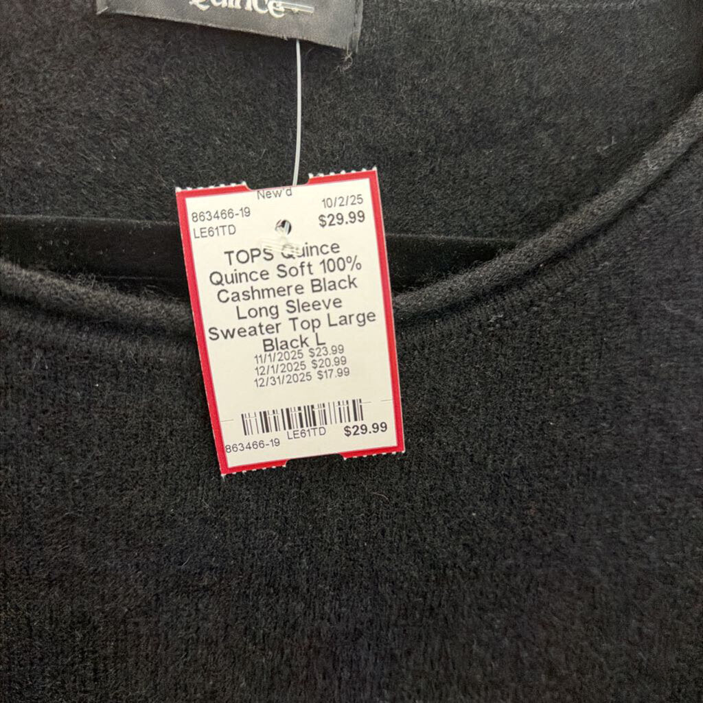 Quince Soft 100% Cashmere Black Long Sleeve Sweater Top Large
