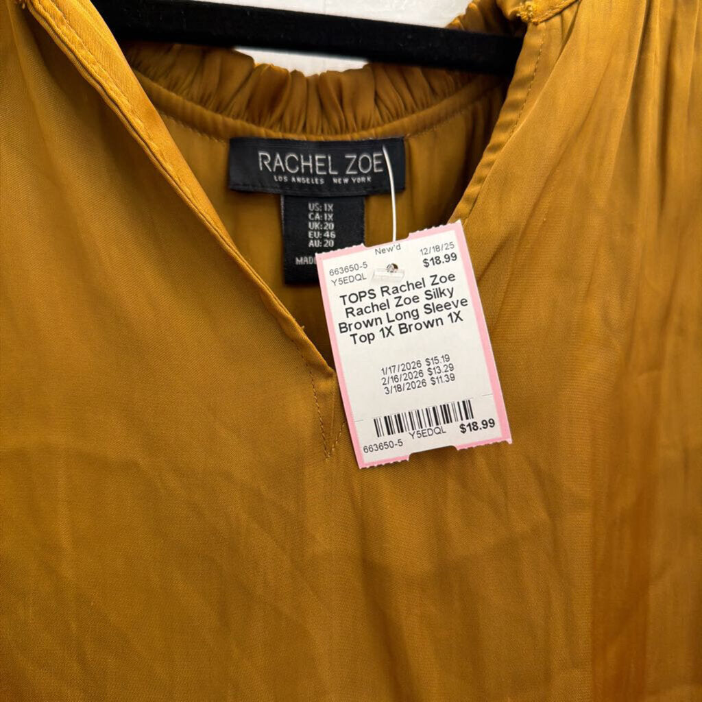 Rachel Zoe Silky Brown Long Sleeve Top 1X