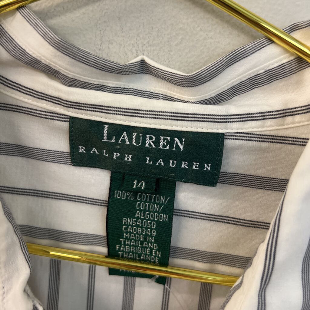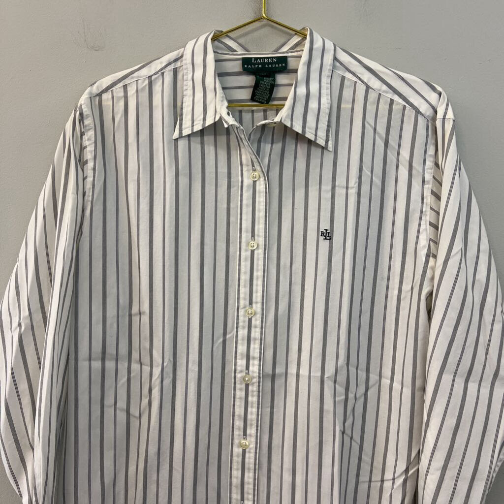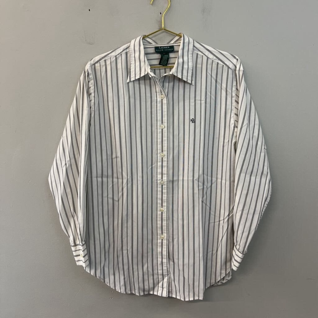 Ralph Lauren White/ Black Striped Long Sleeve Button Down Top 14