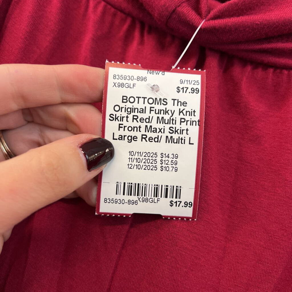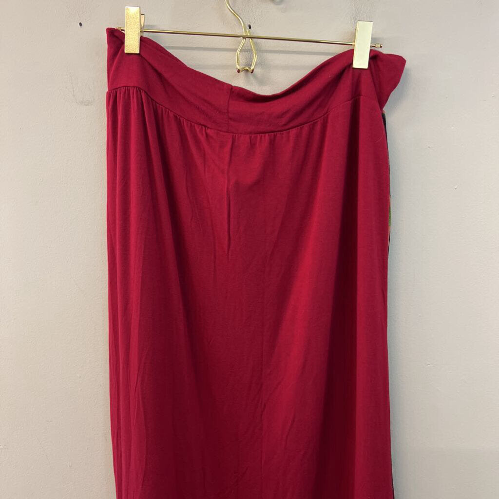 Red/ Multi Print Front Maxi Skirt Large
