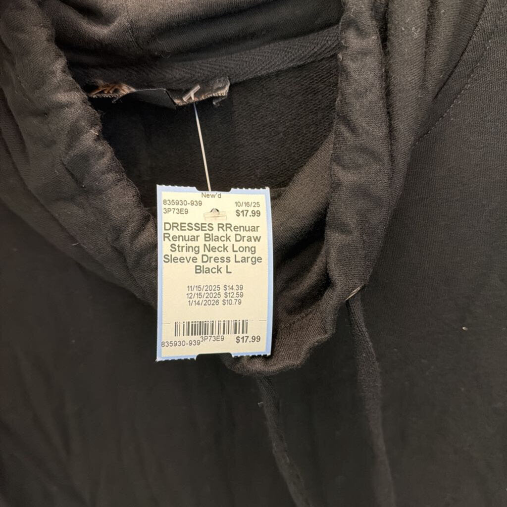 Renuar Black Draw String Neck Long Sleeve Dress Large