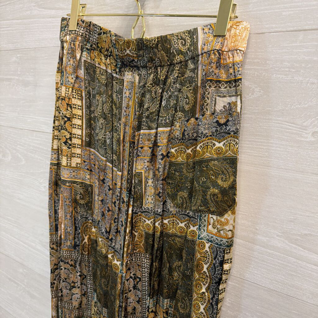 Res Ipsa Gold/ Multi Print Silky Wide Leg Pull On Pants Medium