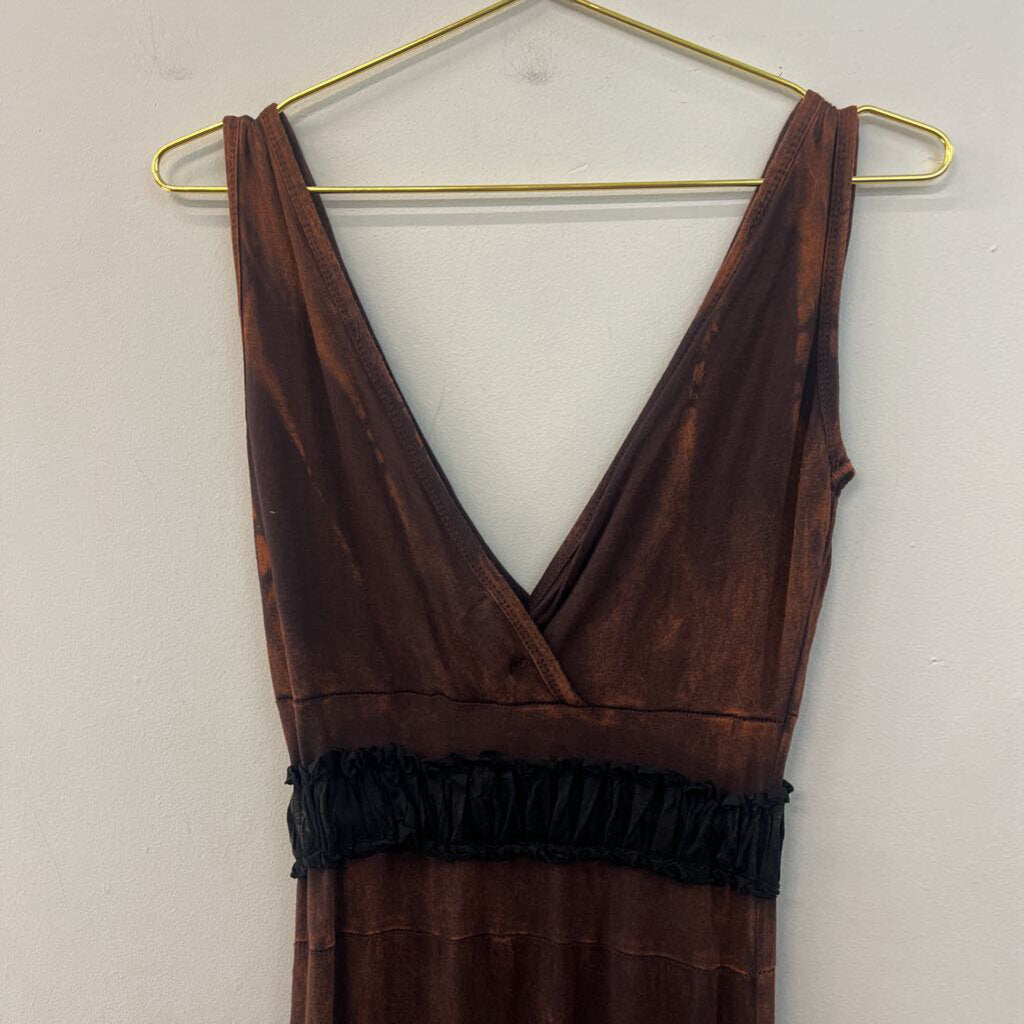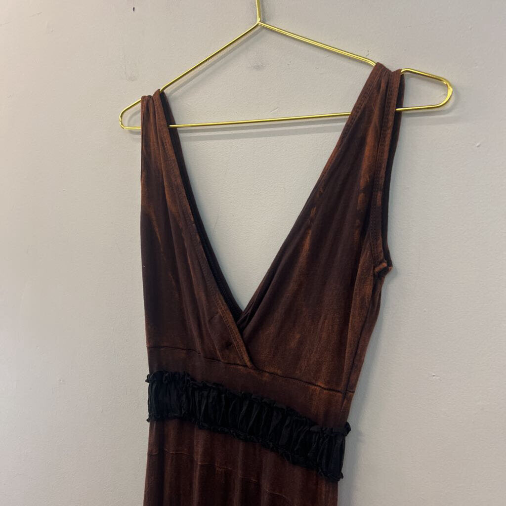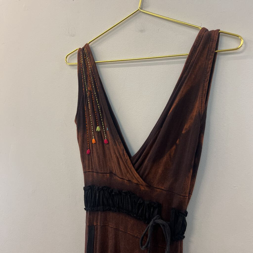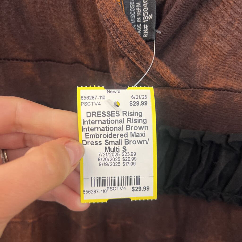 Rising International Brown Embroidered Maxi Dress Small