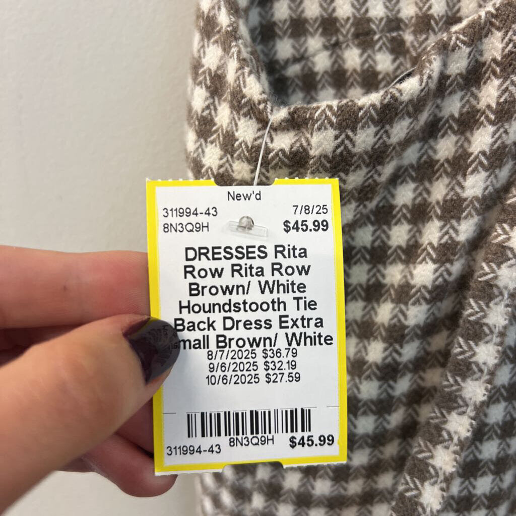 Rita Row Brown/ White Houndstooth Tie Back Dress Extra Small