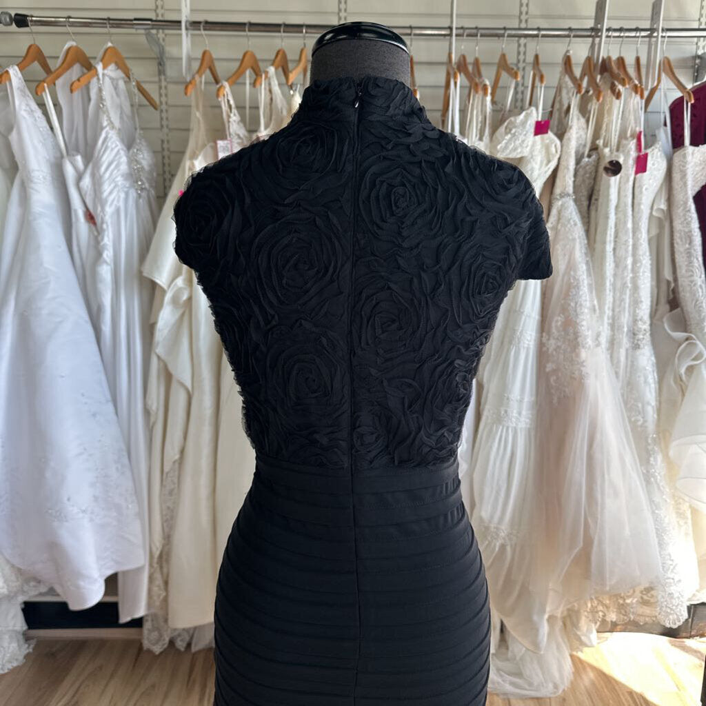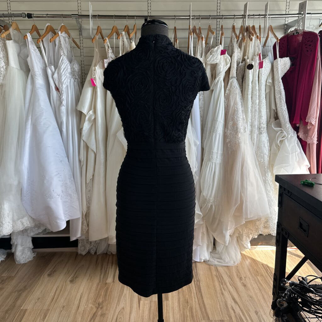 R&M Richards Black Textured Short Sleeve Top Short Formal Dress 14 Petite