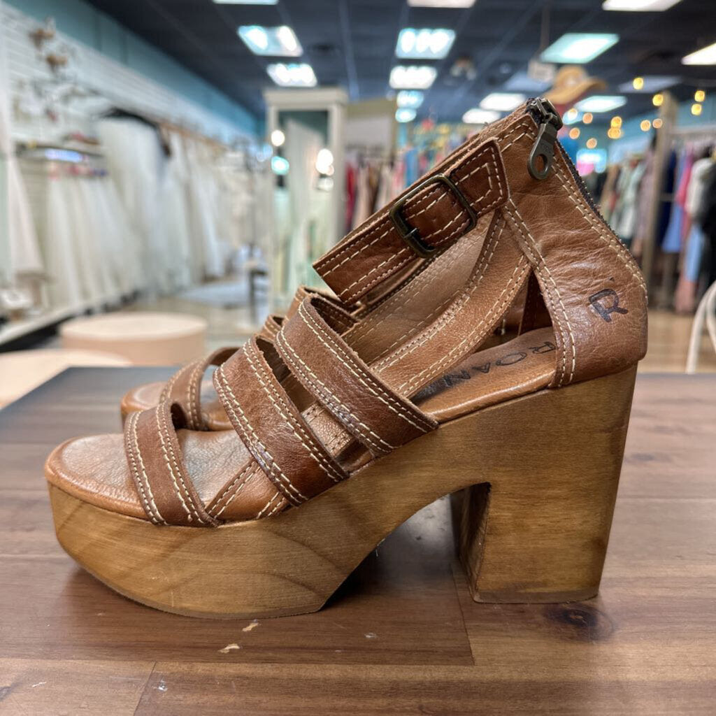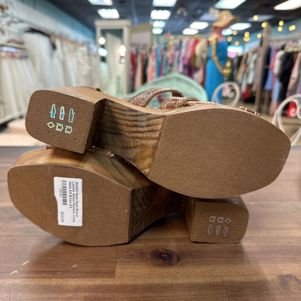 Roan Brown Leather Wood Platform Corey Heels 8.5