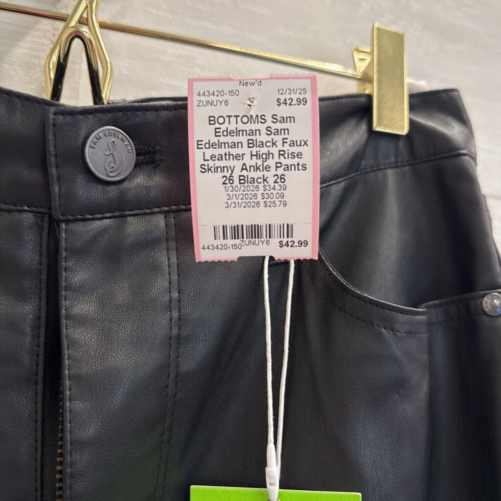 Sam Edelman Black Faux Leather High Rise Skinny Ankle Pants 26