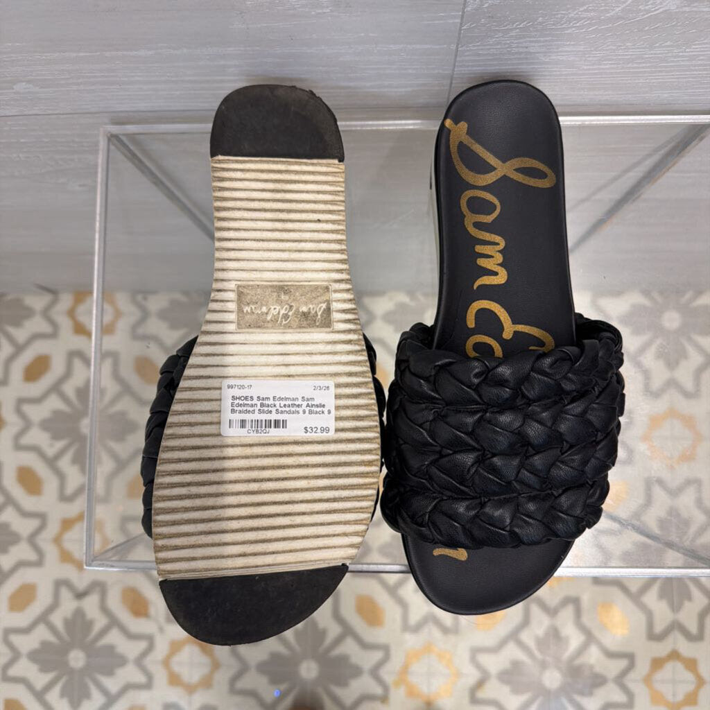 Sam Edelman Black Leather Ainslie Braided Slide Sandals 9