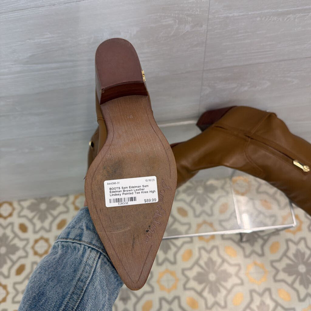 Sam Edelman Brown Leather Lindsey Pointed Toe Knee High Boots 9.5