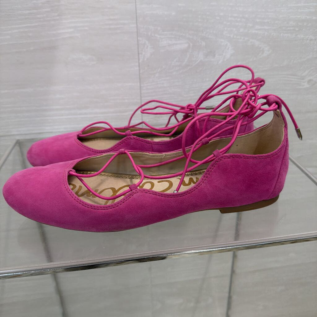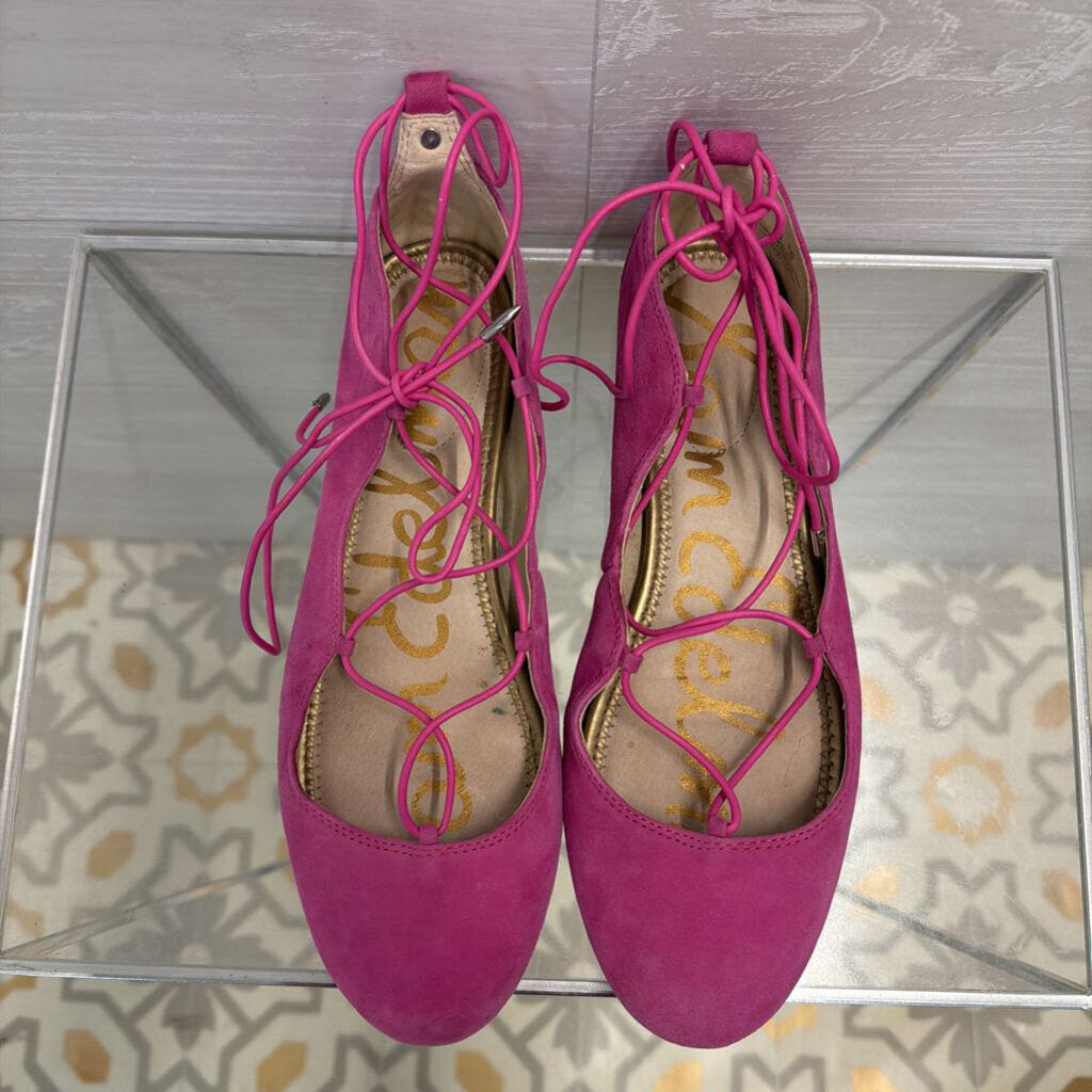 Sam Edelman Pink Suede Lace Up Ballet Flats 8