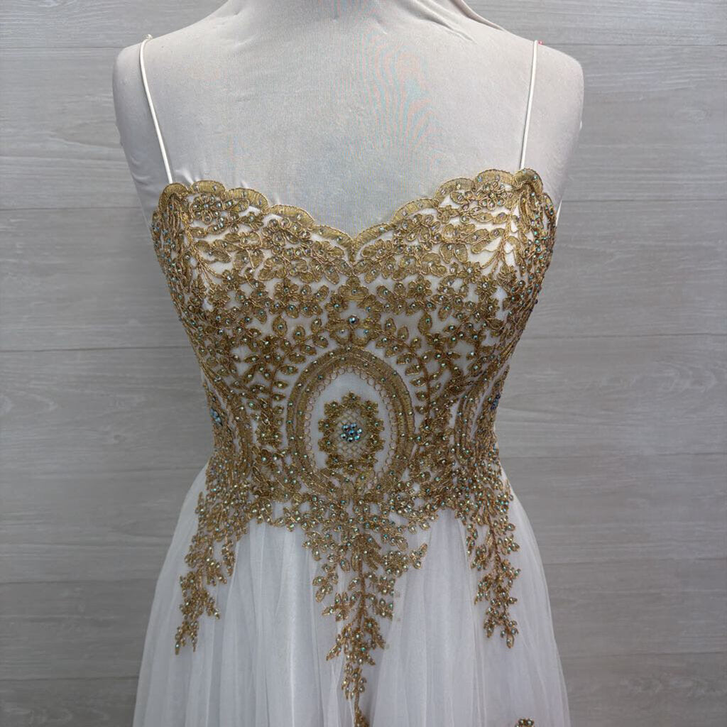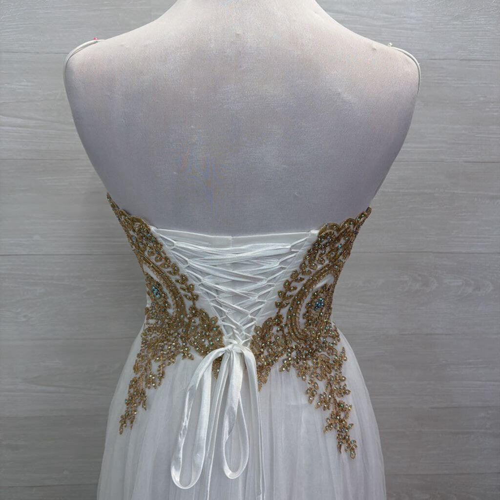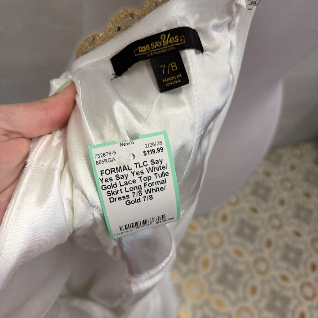 Say Yes White/ Gold Lace Top Tulle Skirt Long Formal Dress 7/8