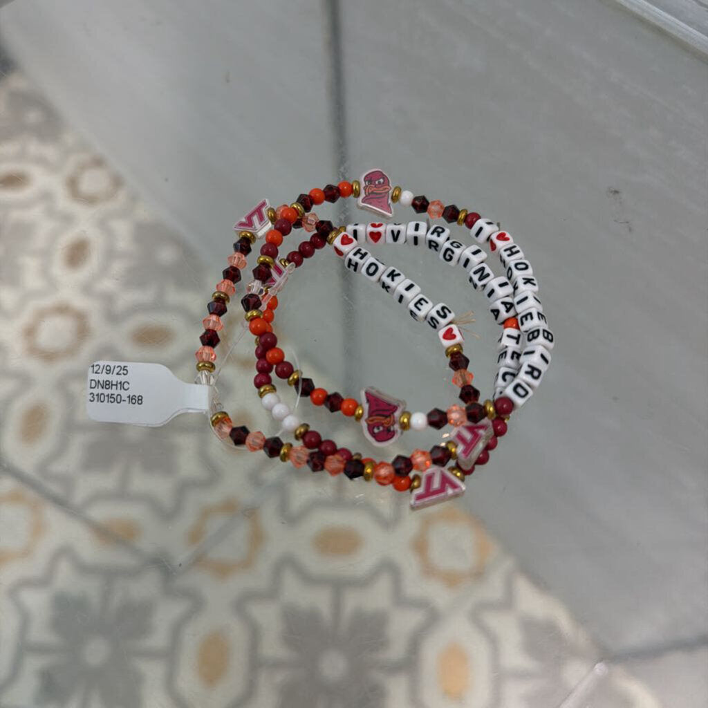 Set of 3 Virginia Tech Beaded Stretchy Bracelets