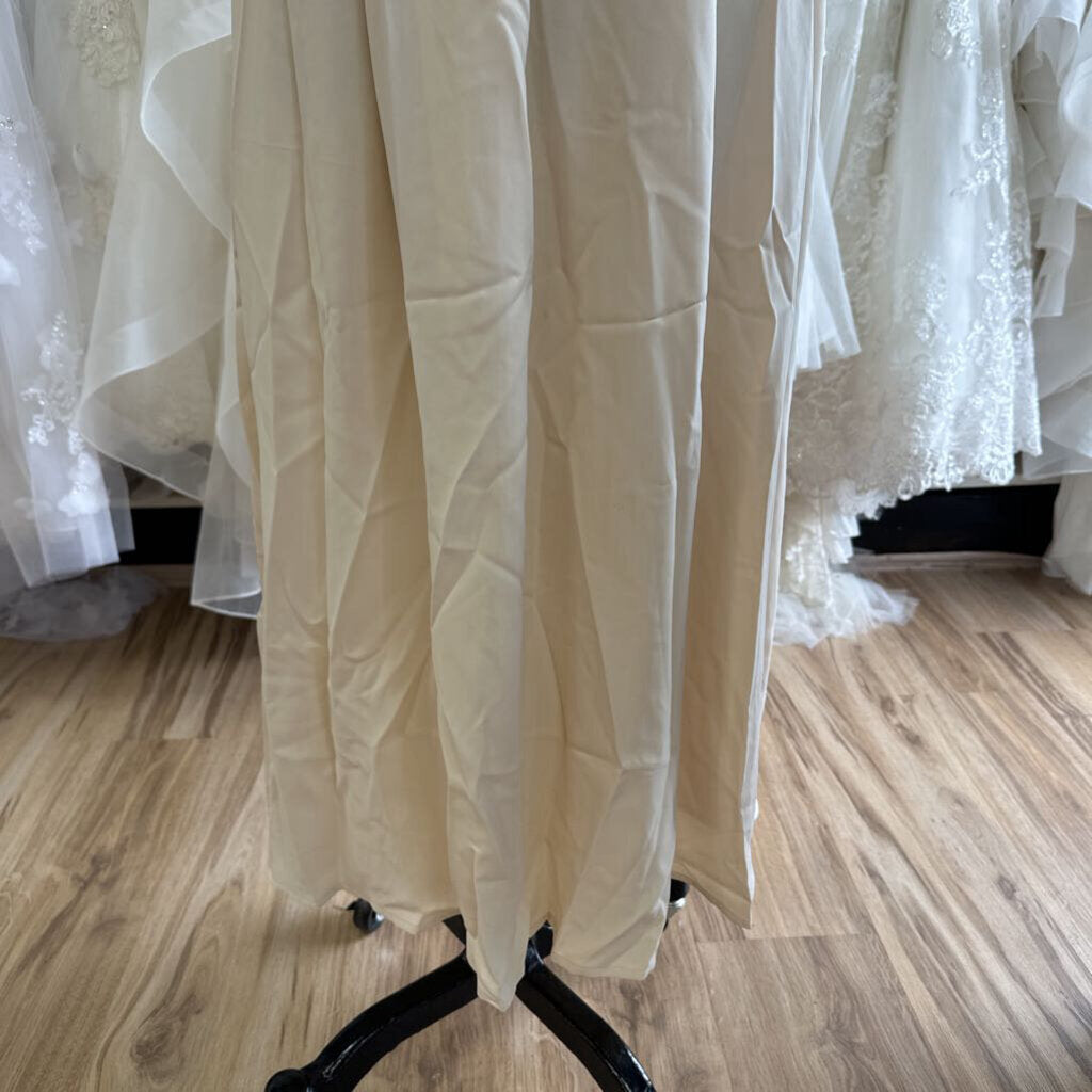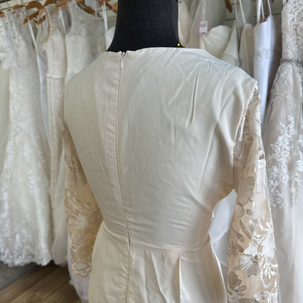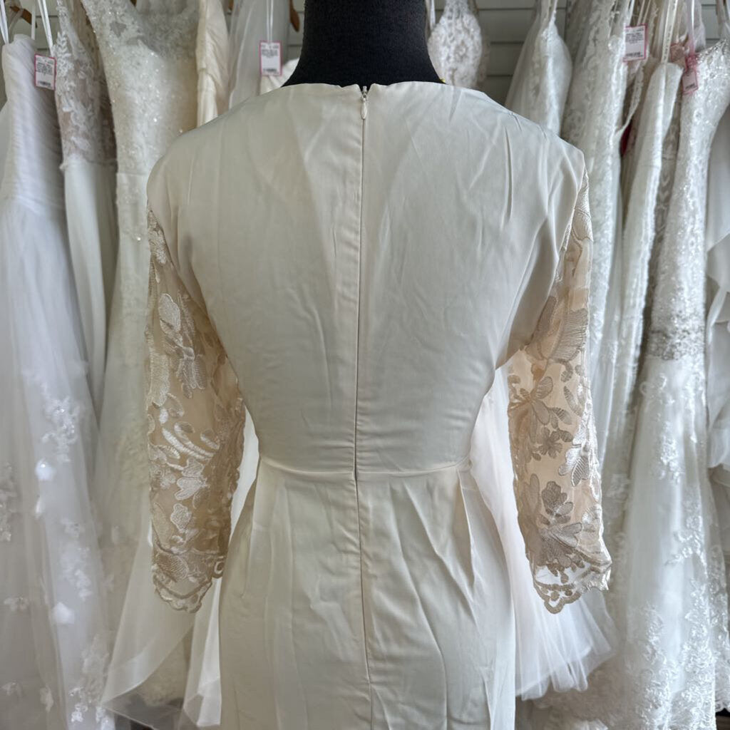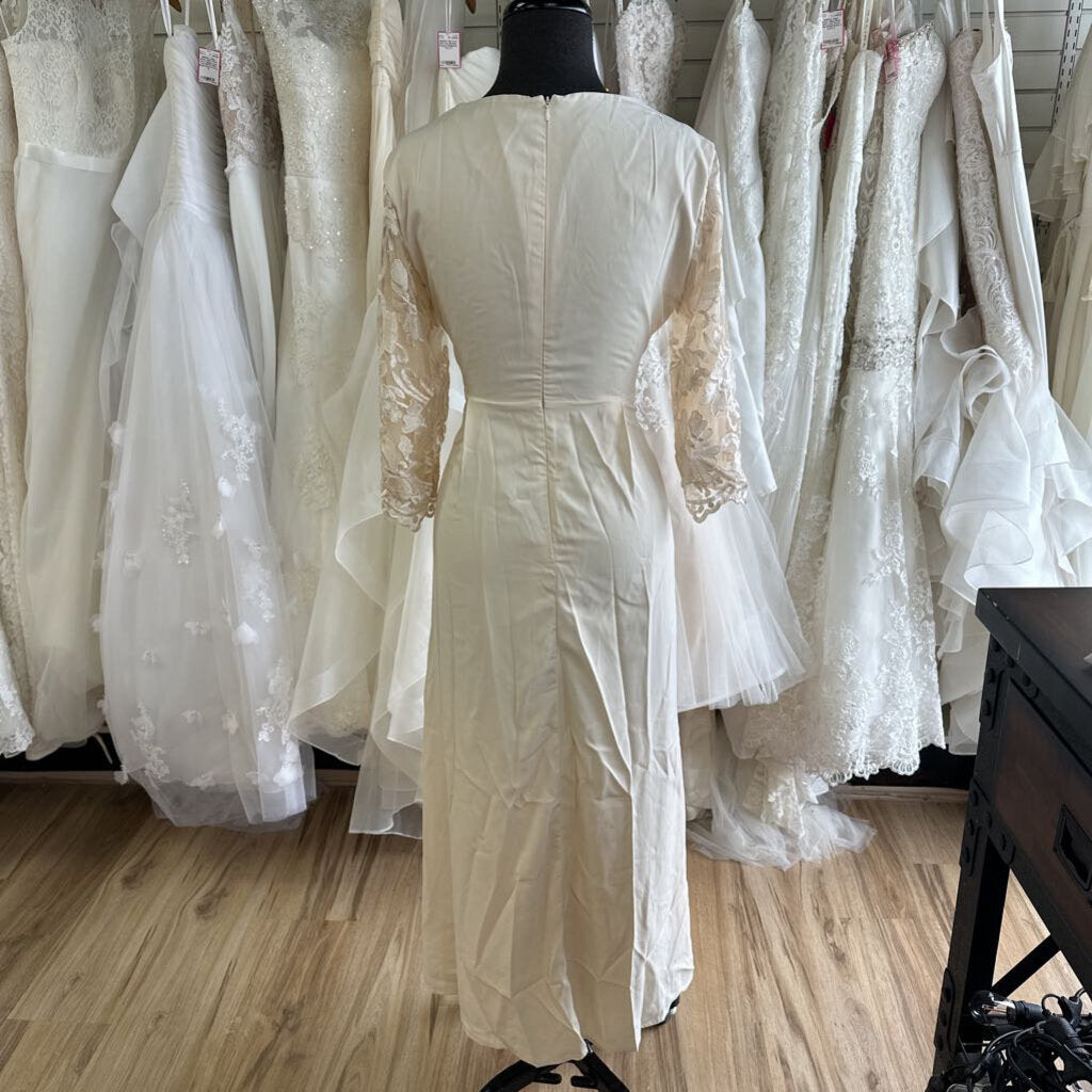 ShallWe Light Gold Lace Long Sleeve Top Long Formal Dress Small