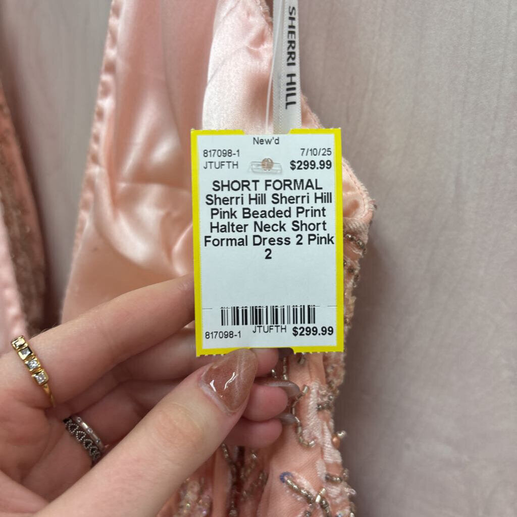 Sherri Hill Pink Beaded Print Halter Neck Short Formal Dress 2