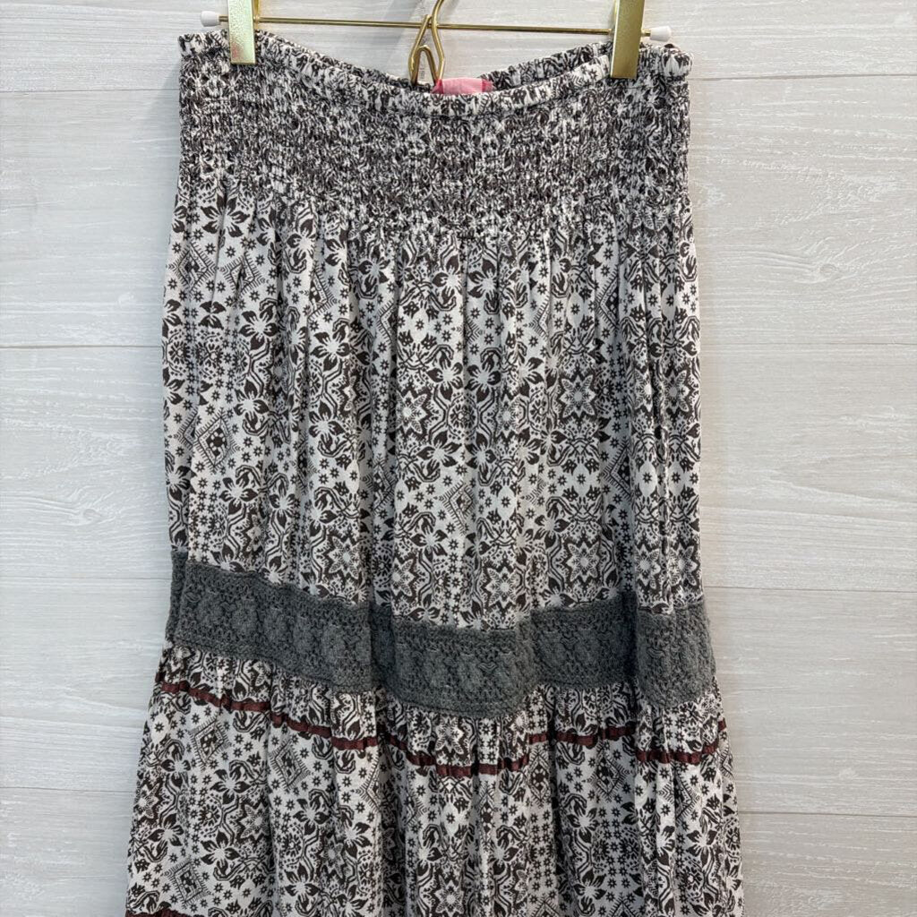 She's Cool White/ Grey Print Maxi Skirt 1X