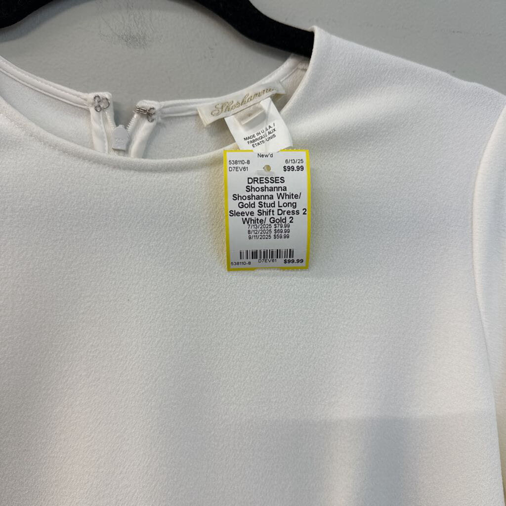 Shoshanna White/ Gold Stud Long Sleeve Shift Dress 2