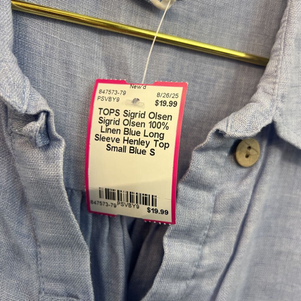 Sigrid Olsen 100% Linen Blue Long Sleeve Henley Top Small