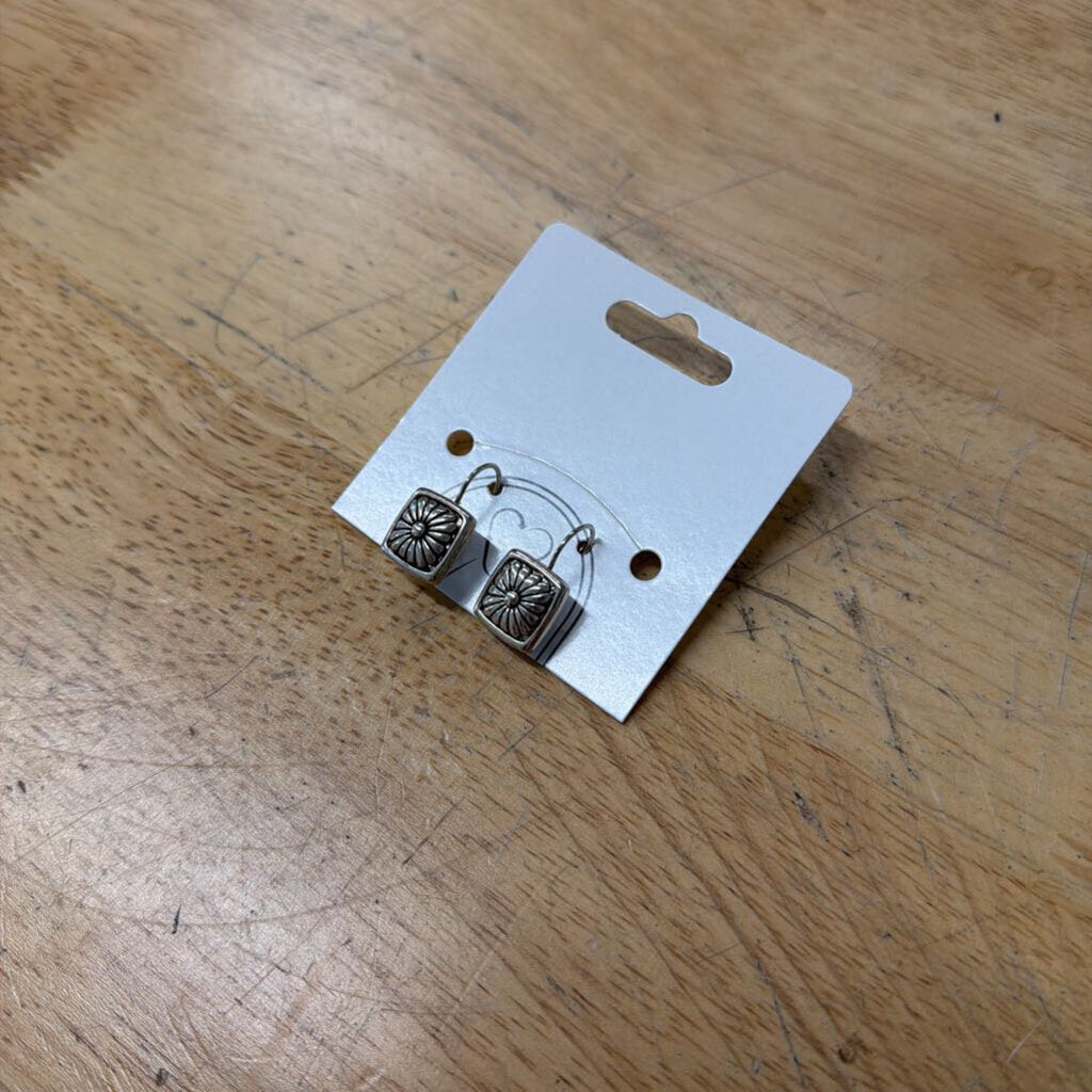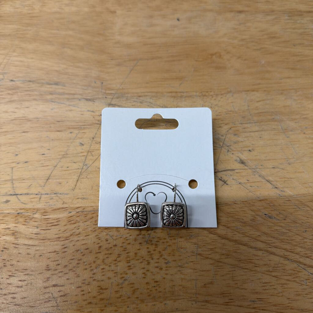 Silver Flower Square Drop Earrings