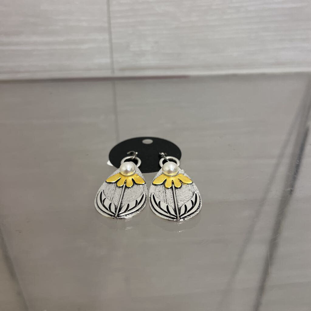 Silver/ Gold/ Pearl Flower Detail Drop Earrings
