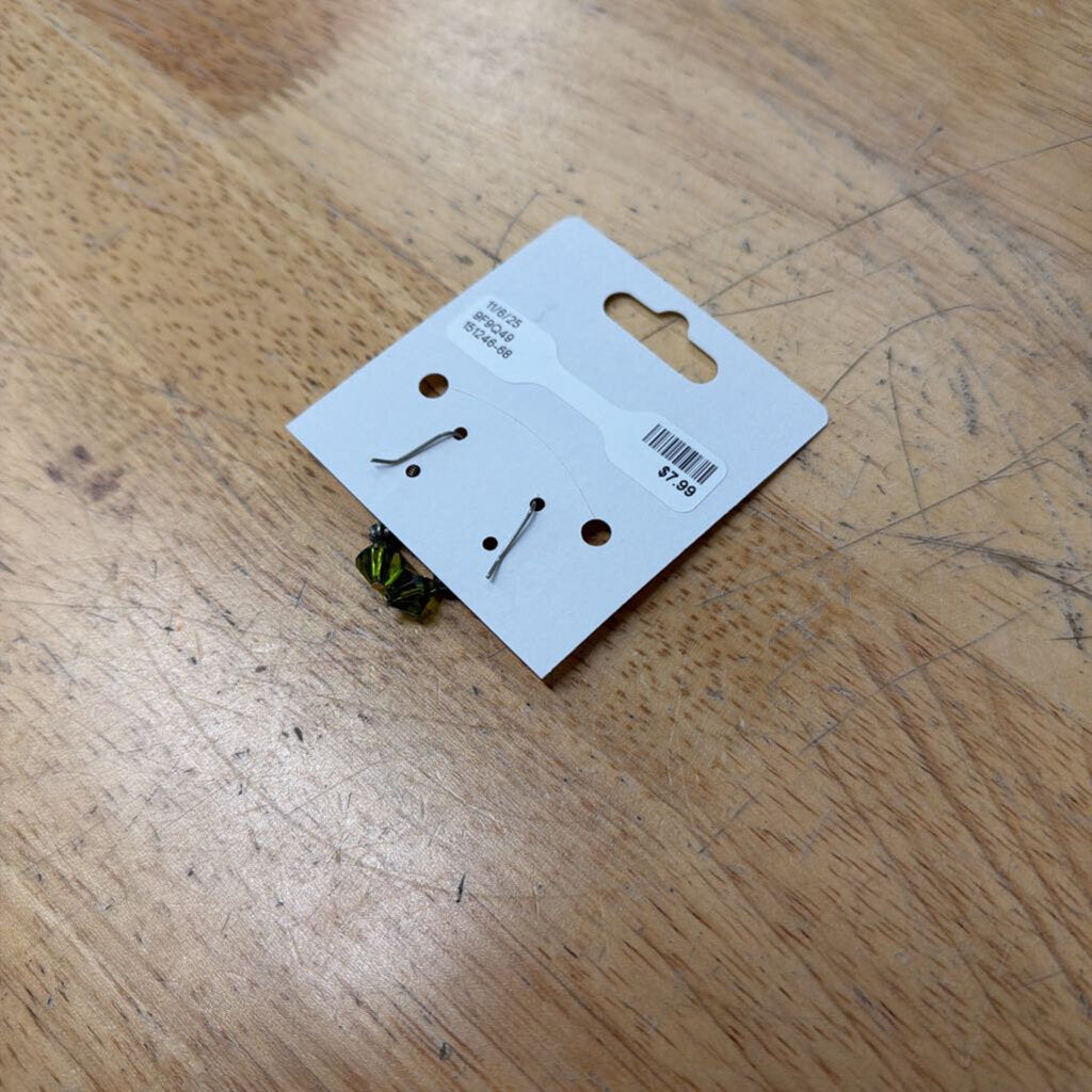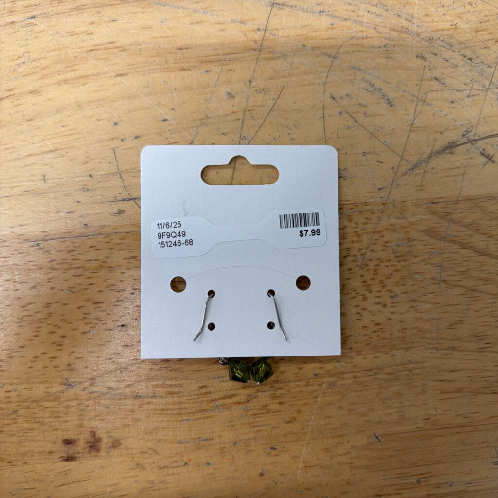 Silver/ Green Bead Drop Earrings