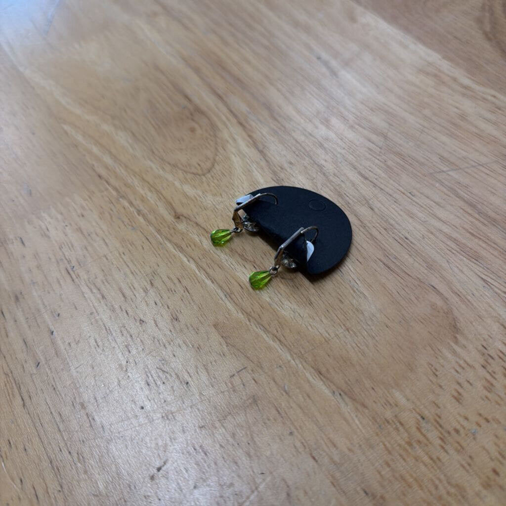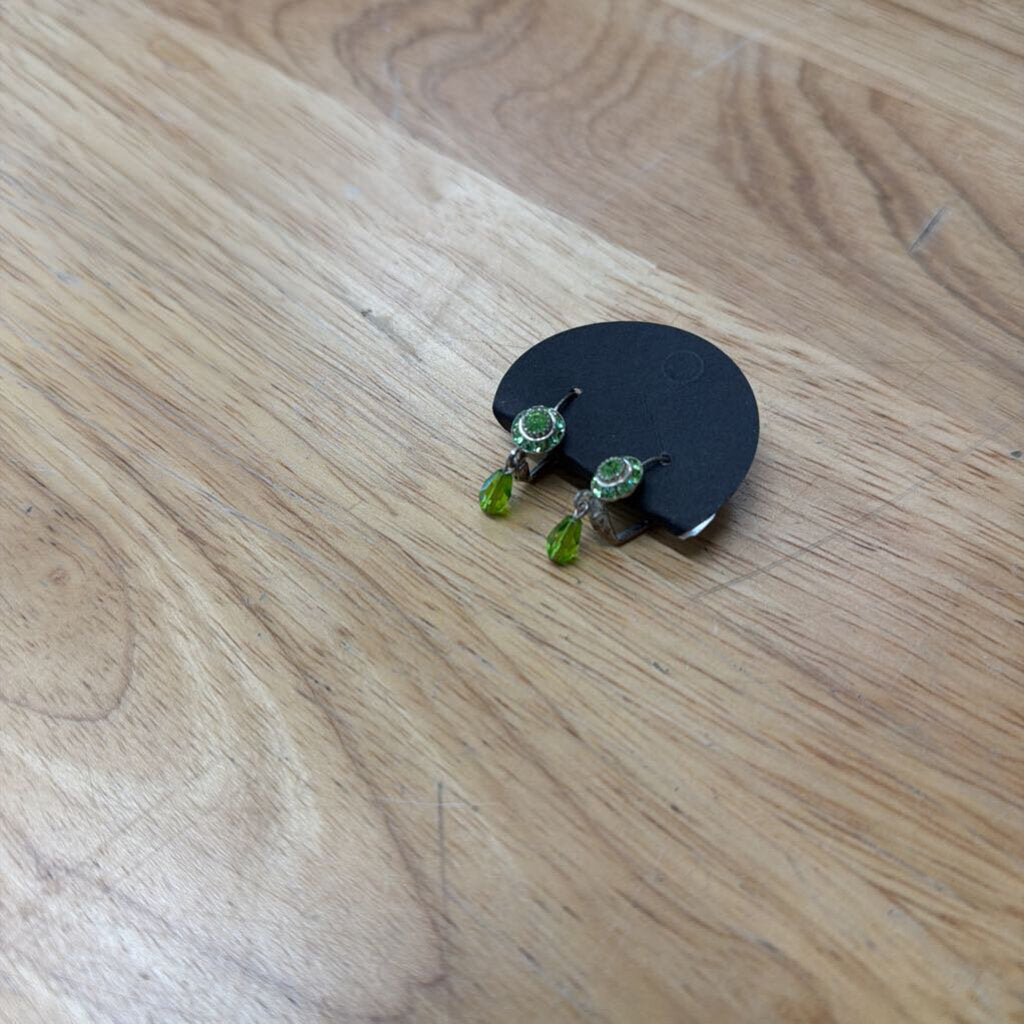 Silver/ Green Rhinestone Drop Earrings