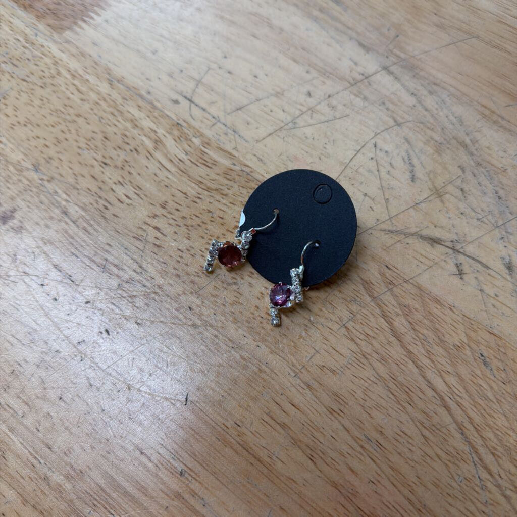 Silver/ Purple Stone/ Rhinestone Small Drop Earrings