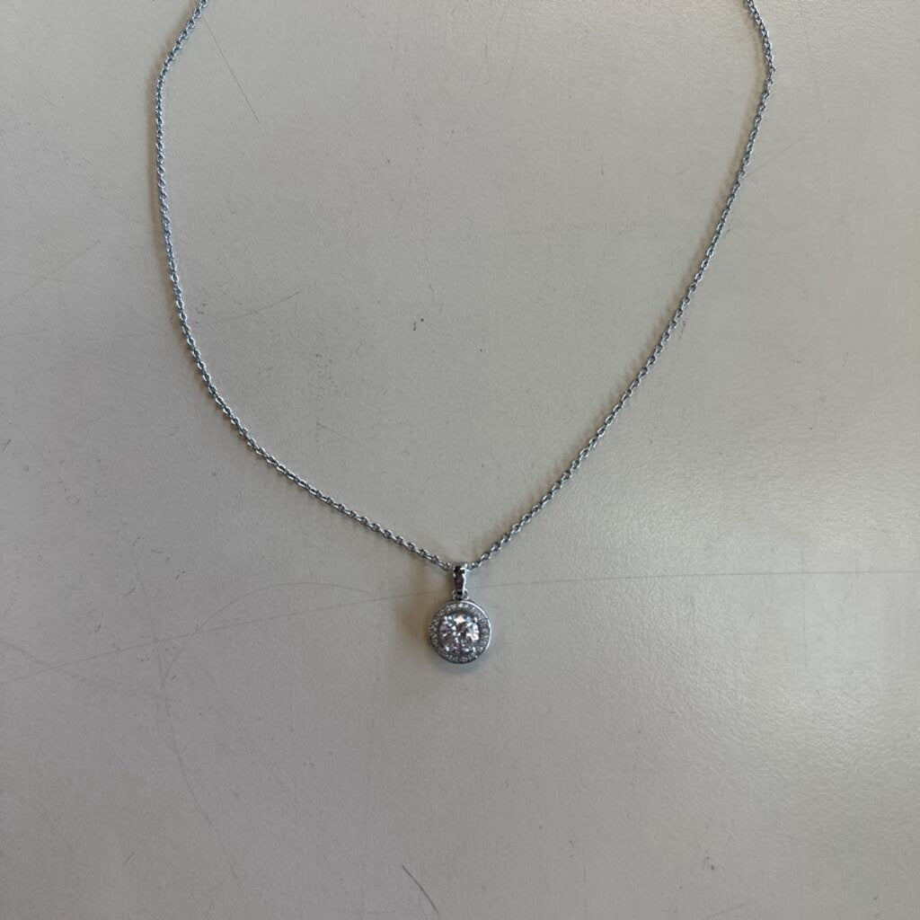 Silver/ Rhinestone Layered Circle Pendant Necklace