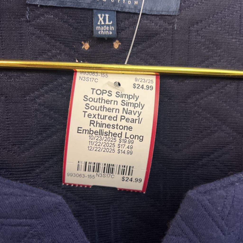 Simply Southern Navy Textured Pearl/ Rhinestone Embellished Long Sleeve Top Extra Large