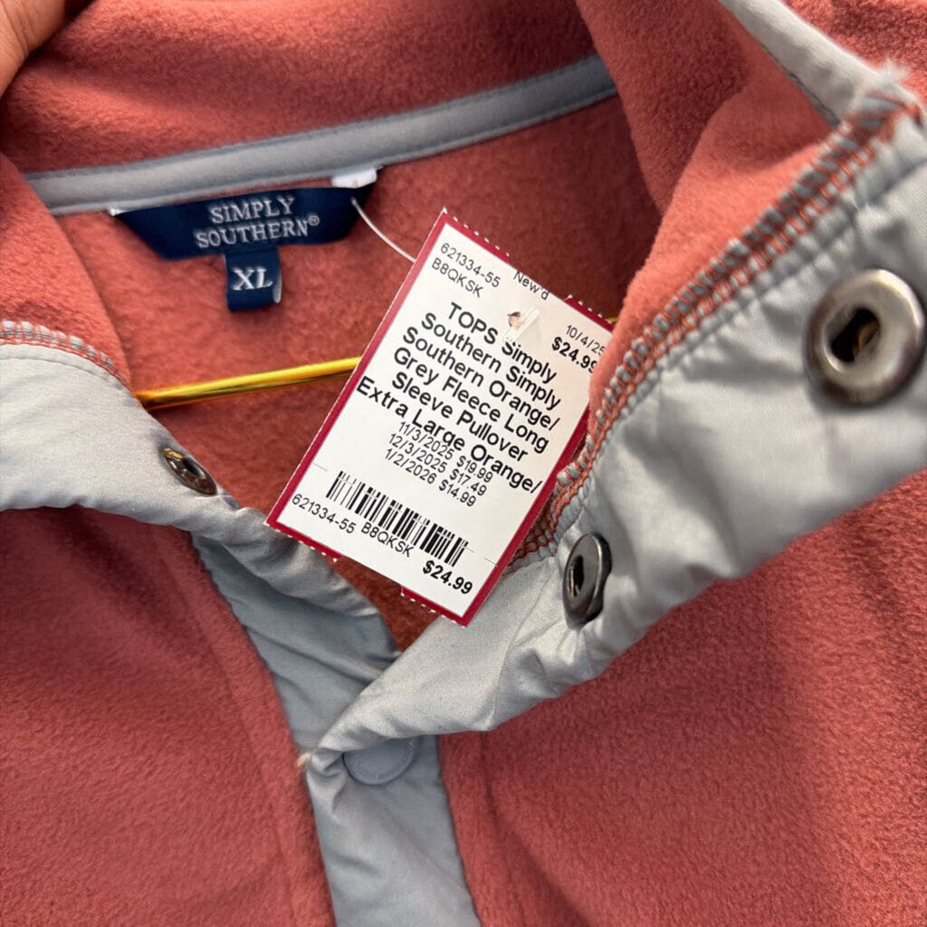 Simply Southern Orange/ Grey Fleece Long Sleeve Pullover Extra Large