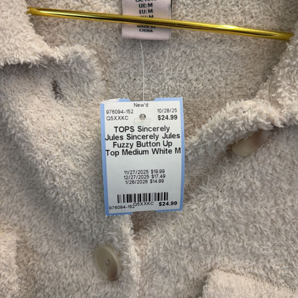 Sincerely Jules Fuzzy Button Up Top Medium