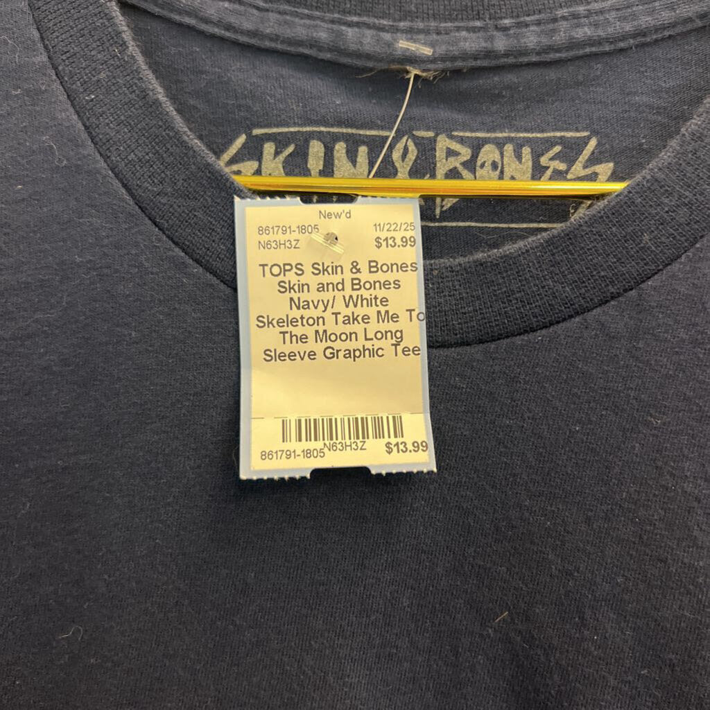 Skin and Bones Navy/ White Skeleton Take Me To The Moon Long Sleeve Graphic Tee Medium