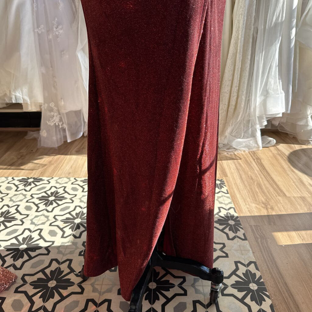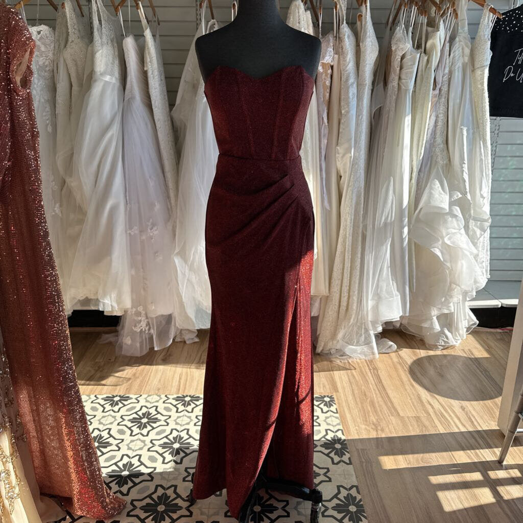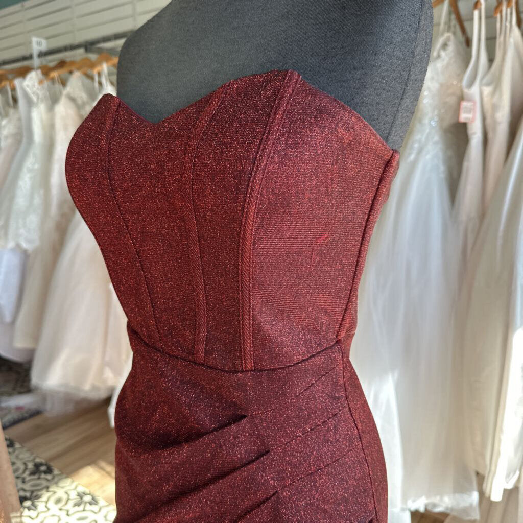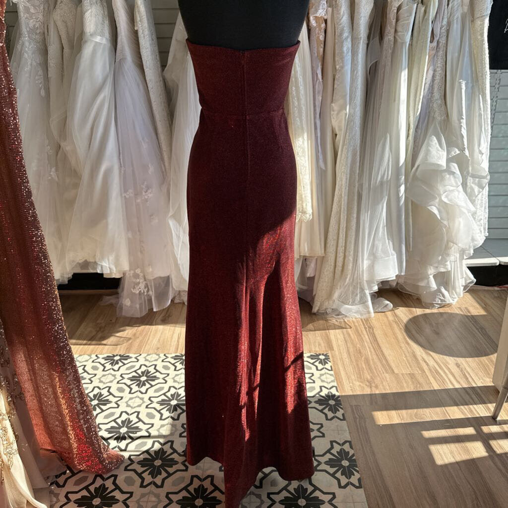 Social Couture Red Shimmer Strapless Long Formal Dress 7/8