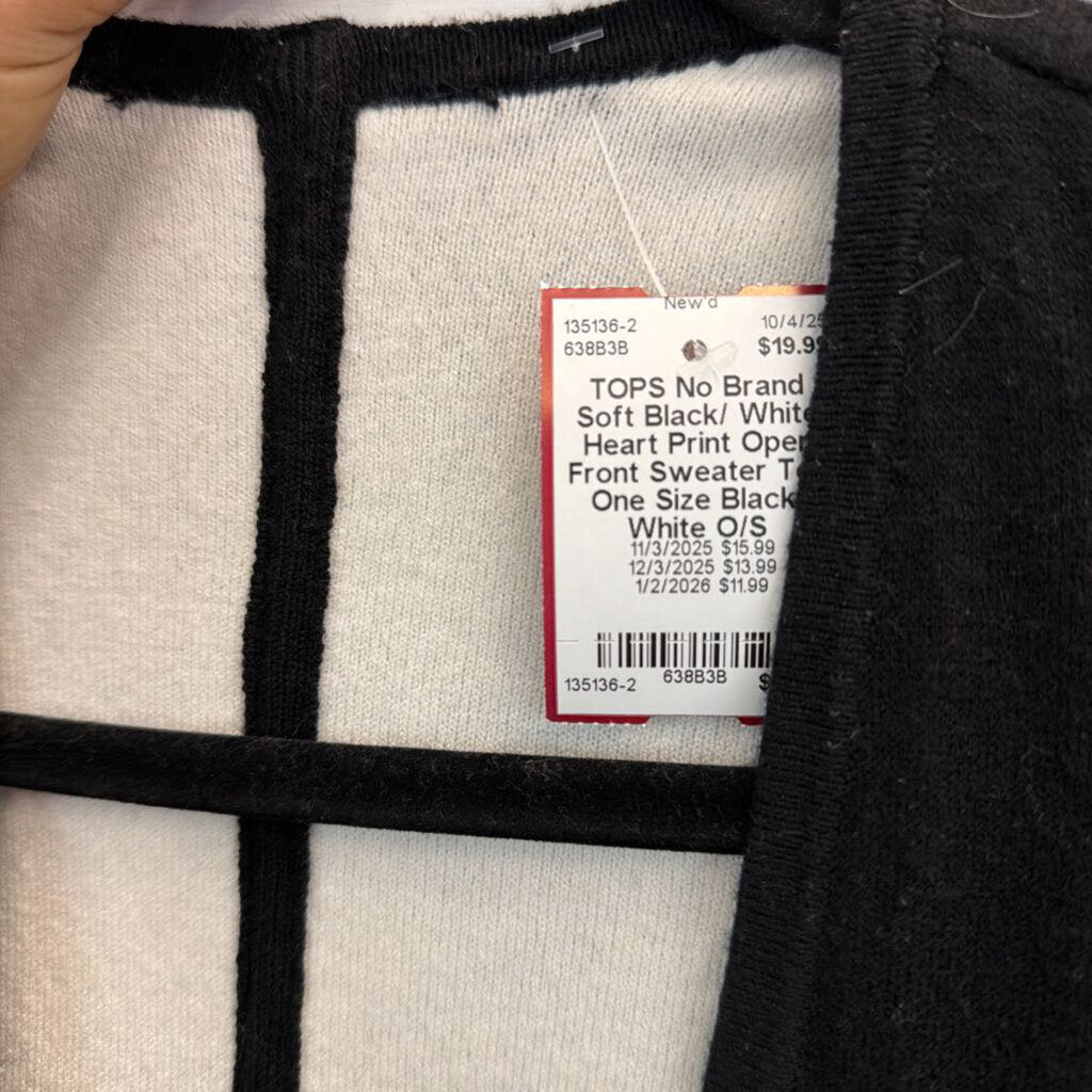 Soft Black/ White Heart Print Open Front Sweater Top One Size
