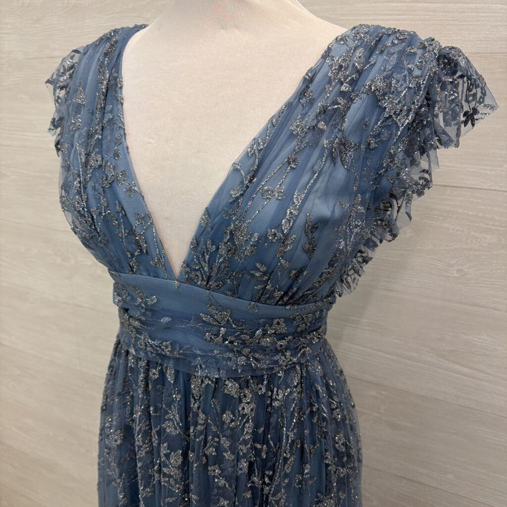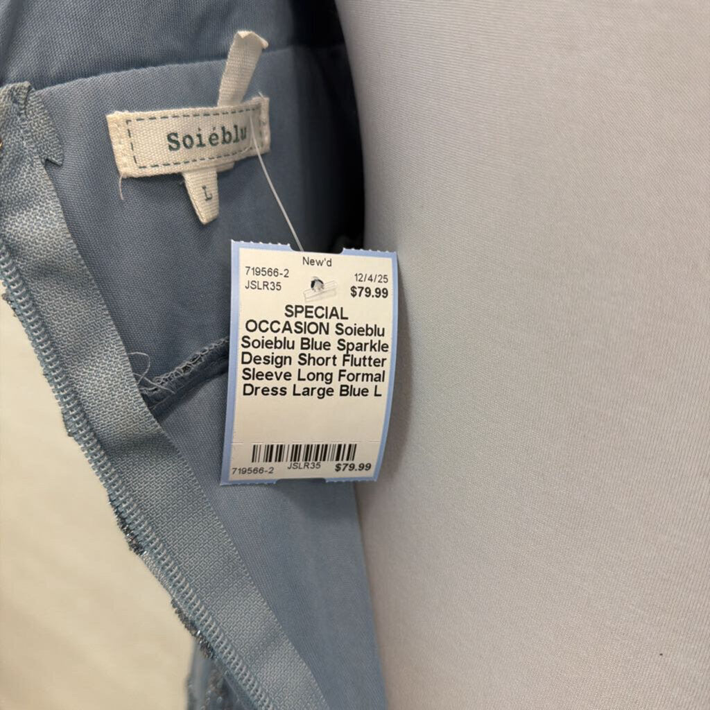 Soieblu Blue Sparkle Design Short Flutter Sleeve Long Formal Dress Large