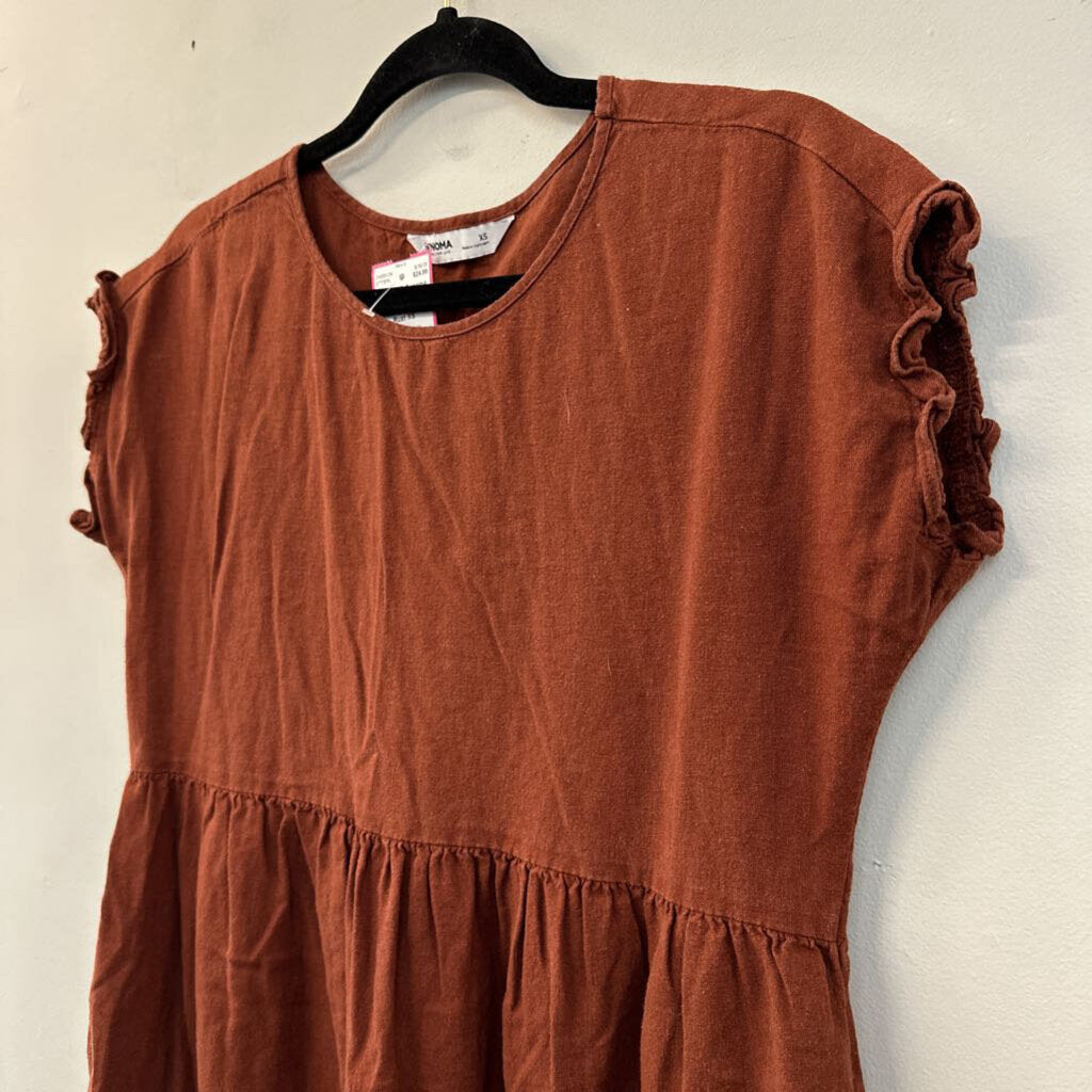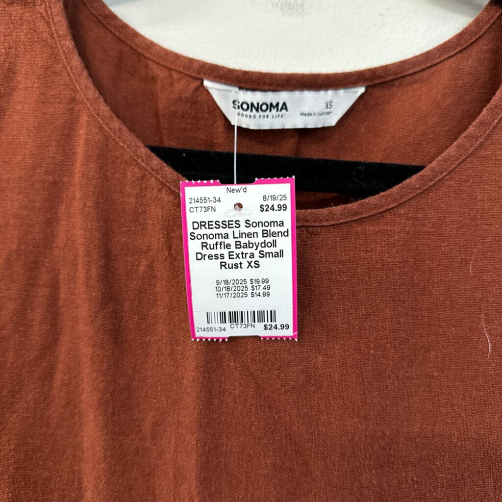 Sonoma Linen Blend Ruffle Babydoll Dress Extra Small