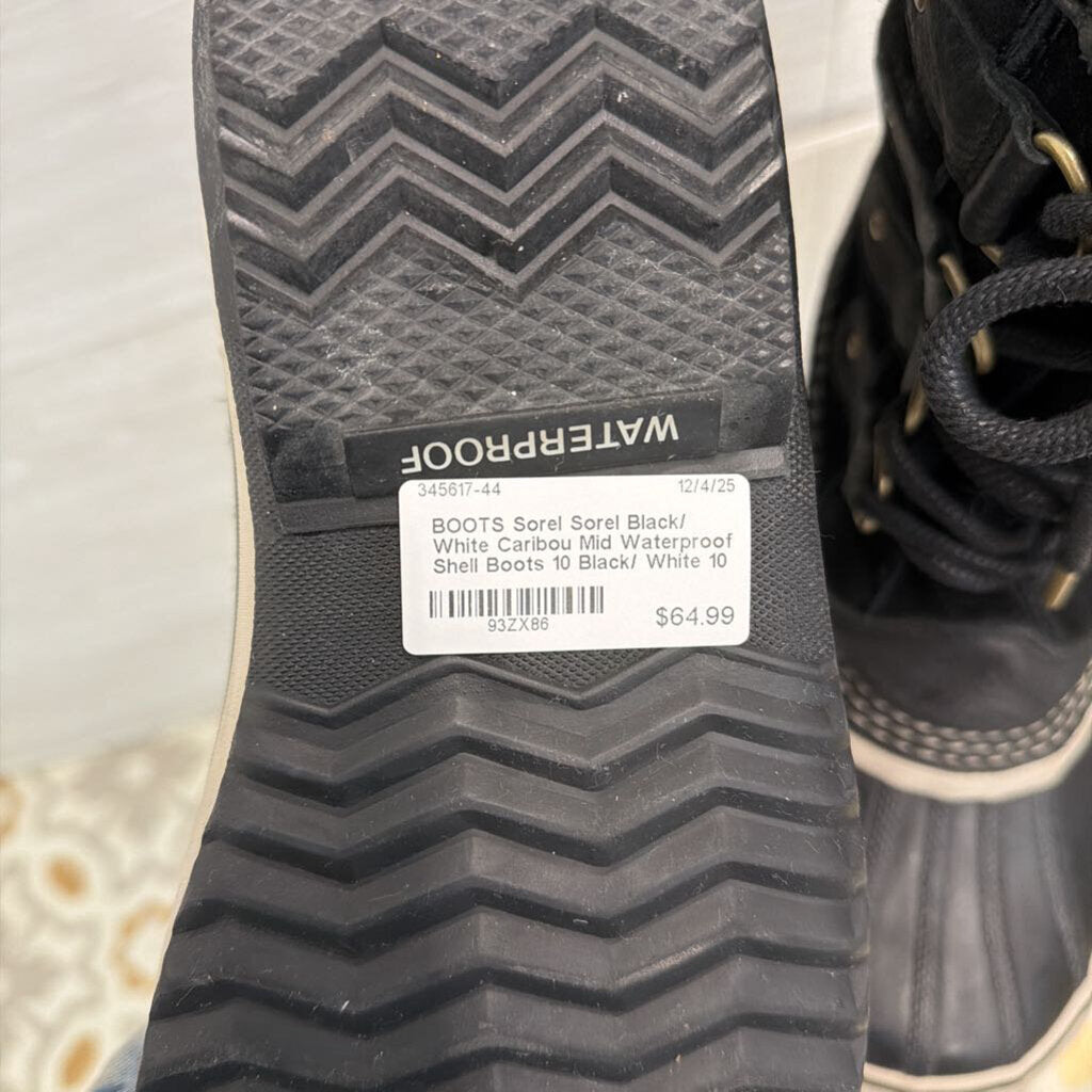 Sorel Black/ White Caribou Mid Waterproof Shell Boots 10