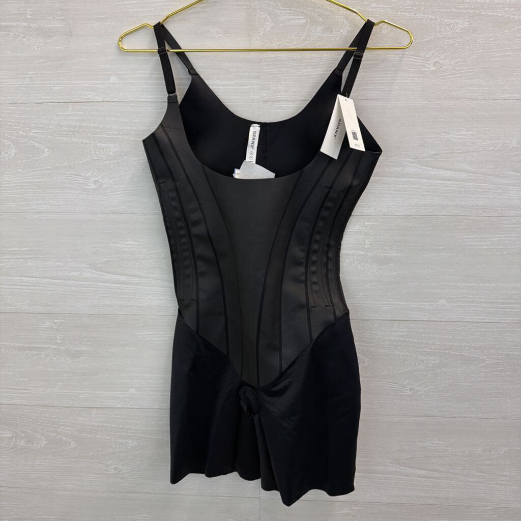 Spanx Black Open Bust Mid Thigh Bodysuit Small