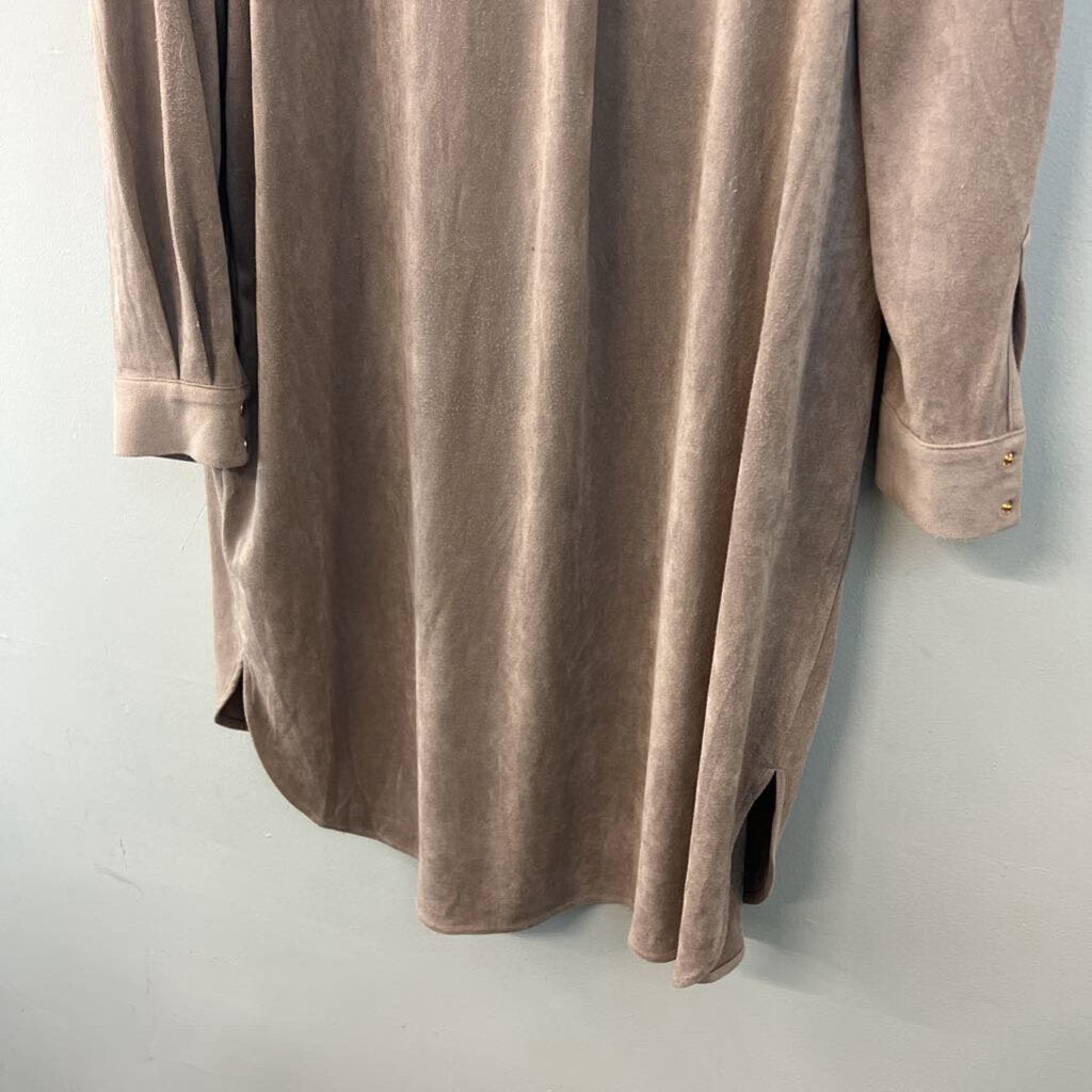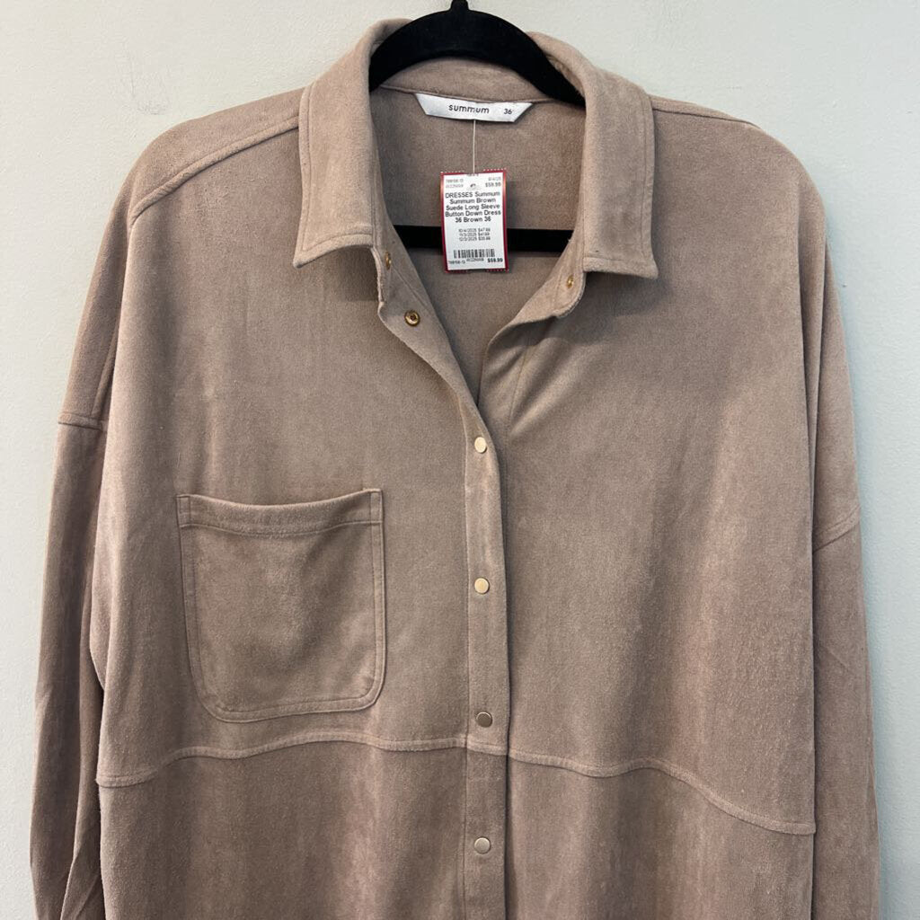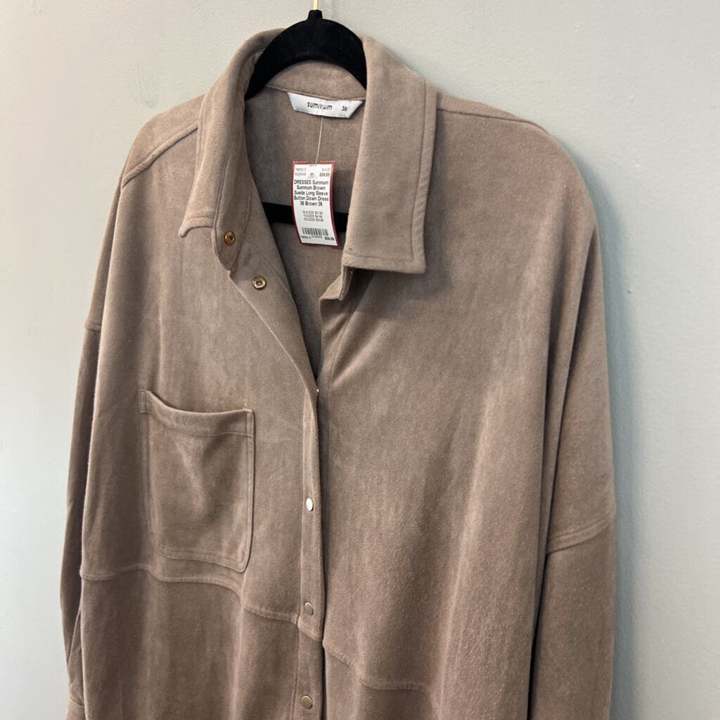 Summum Brown Suede Long Sleeve Button Down Dress 36
