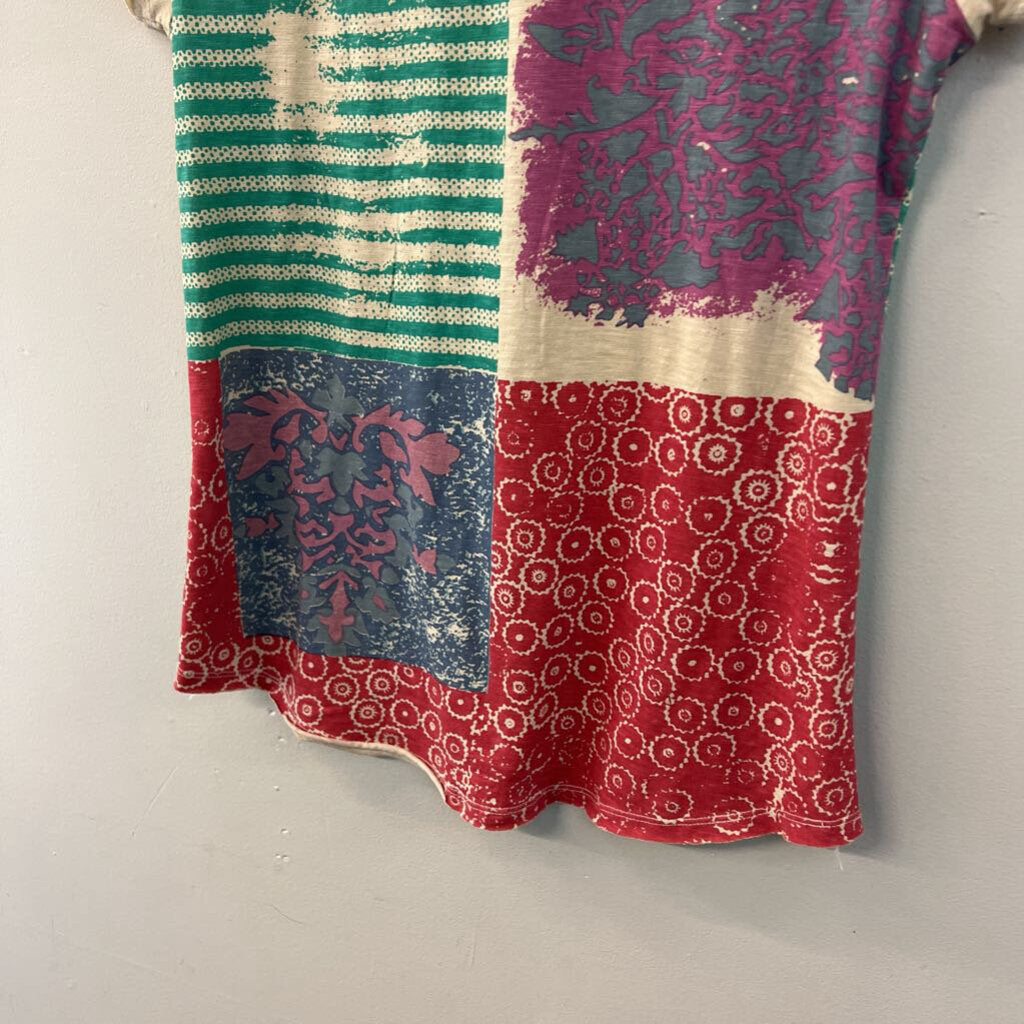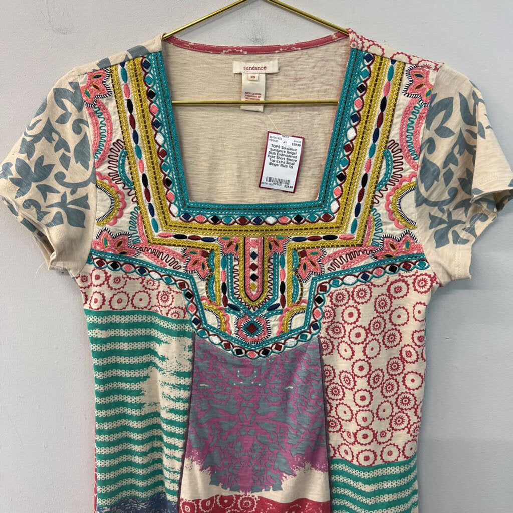 Sundance Beige/ Multi Embroidered Print Short Sleeve Top Extra Small