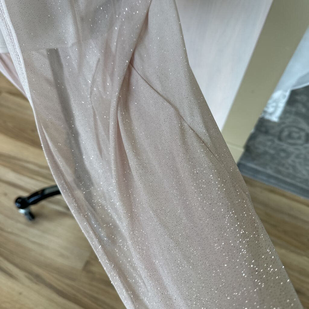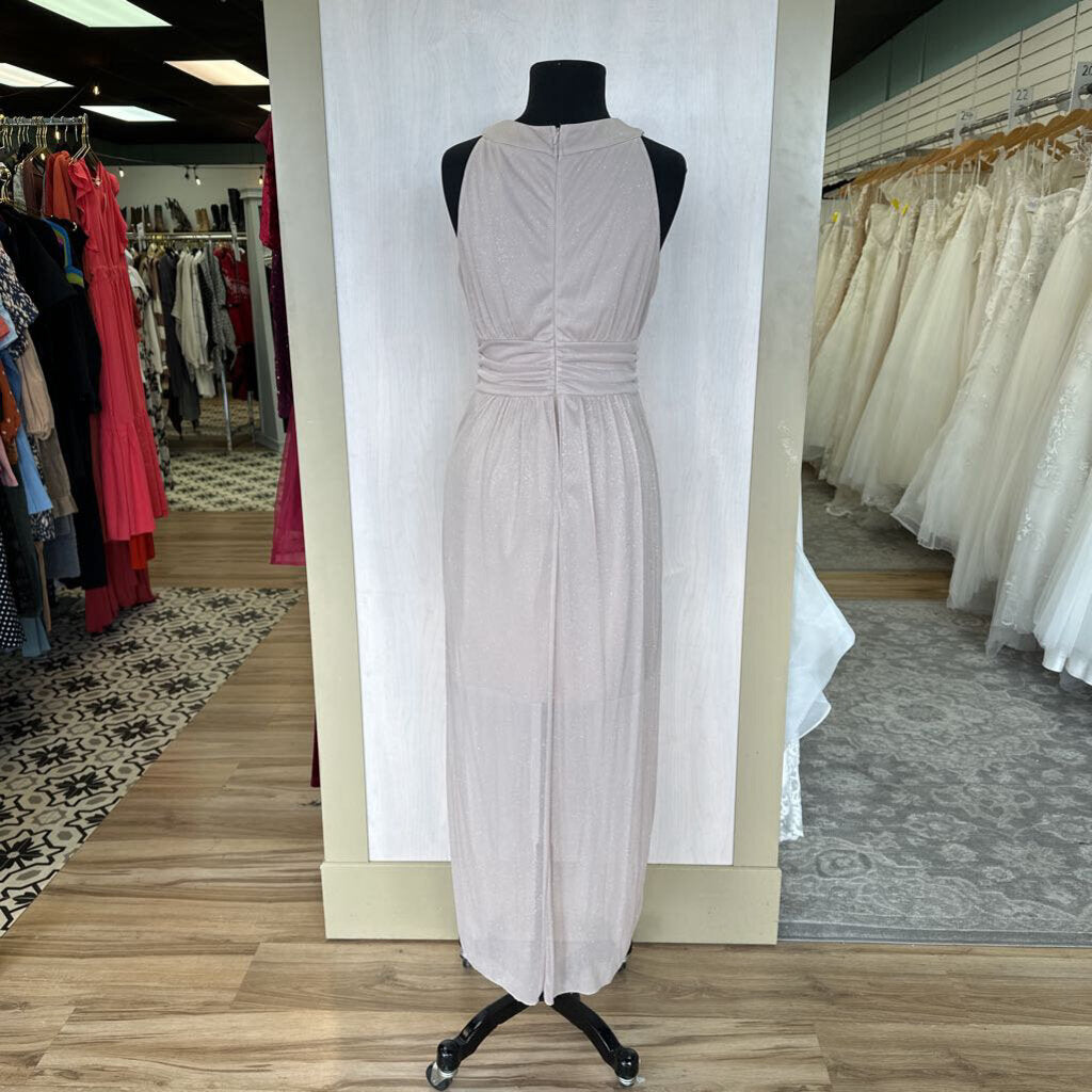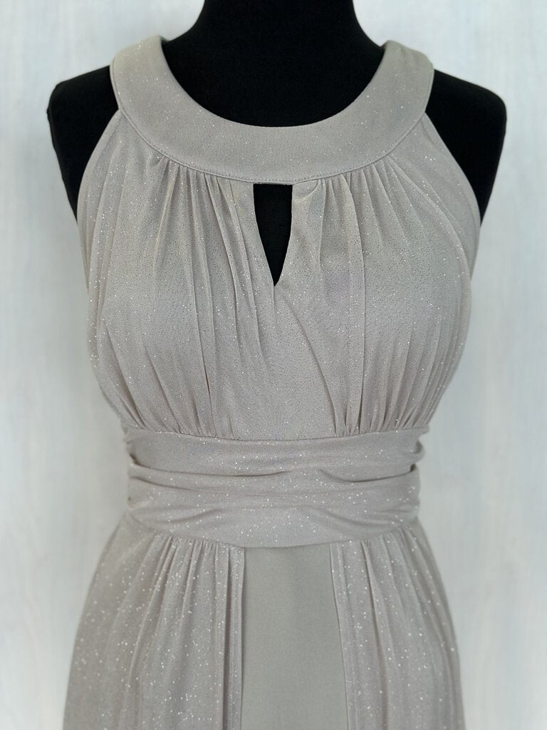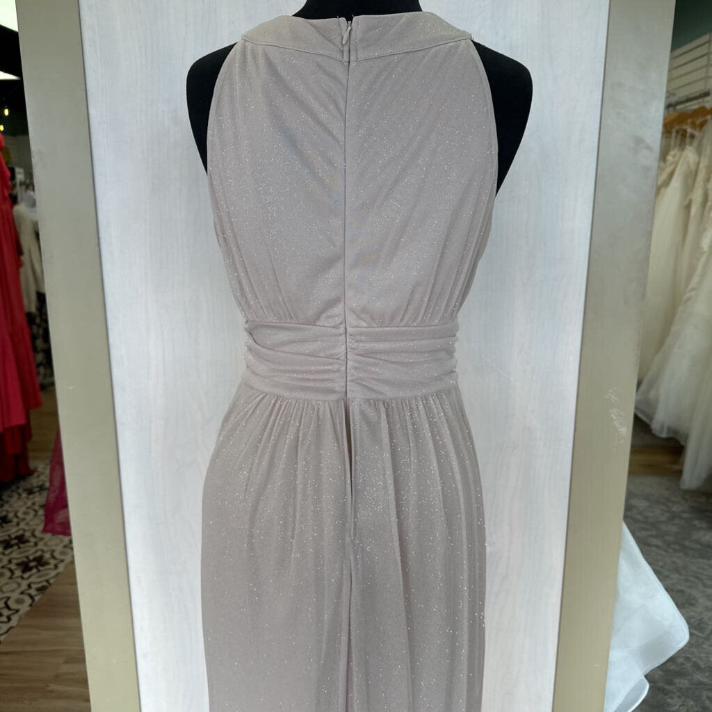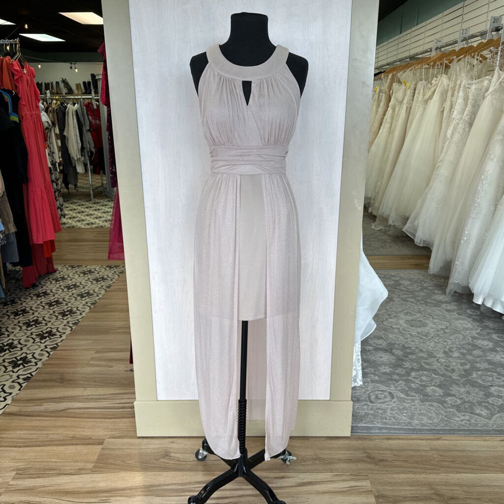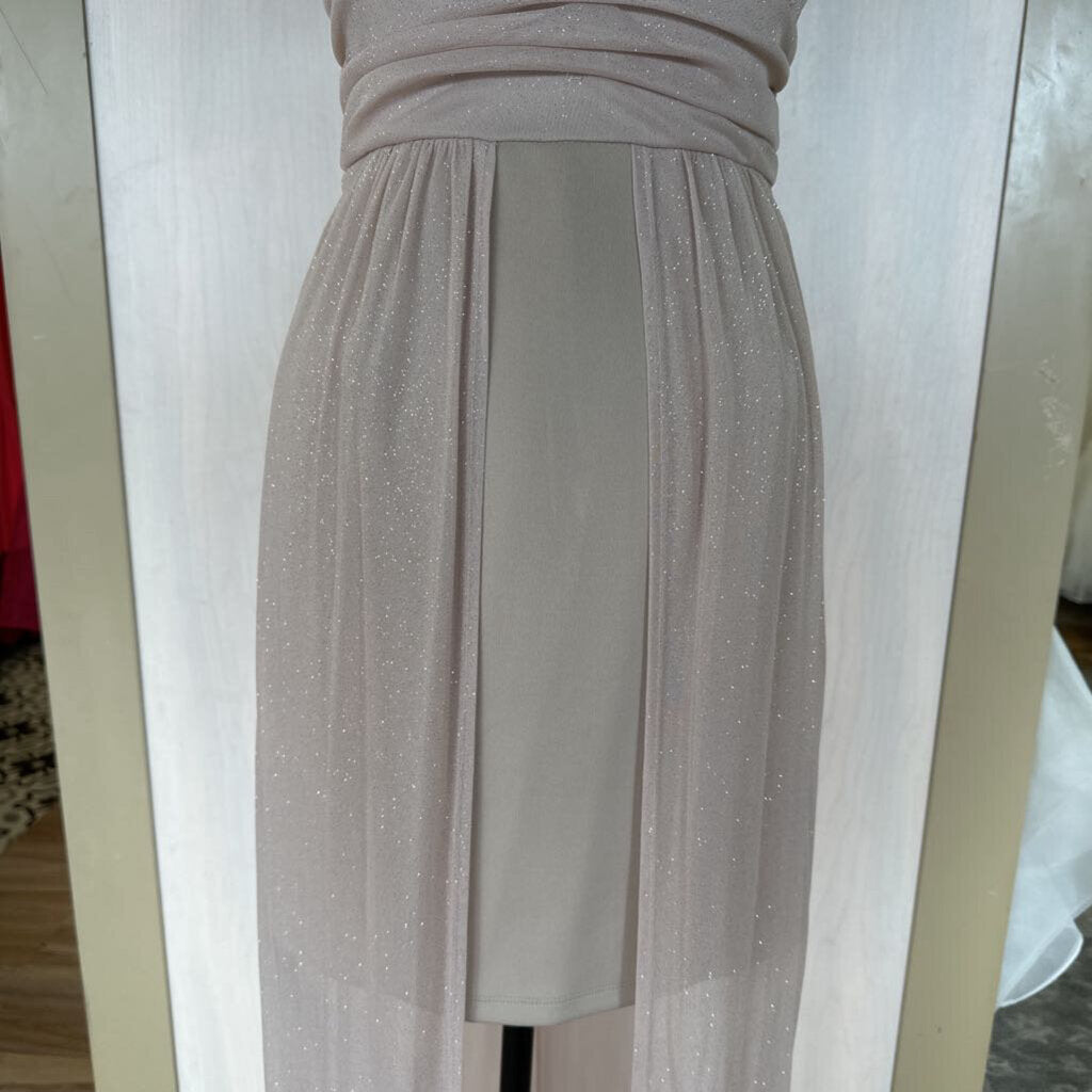 Sweet Storm Beige Glitter High Neck Hi-Low Dress Large