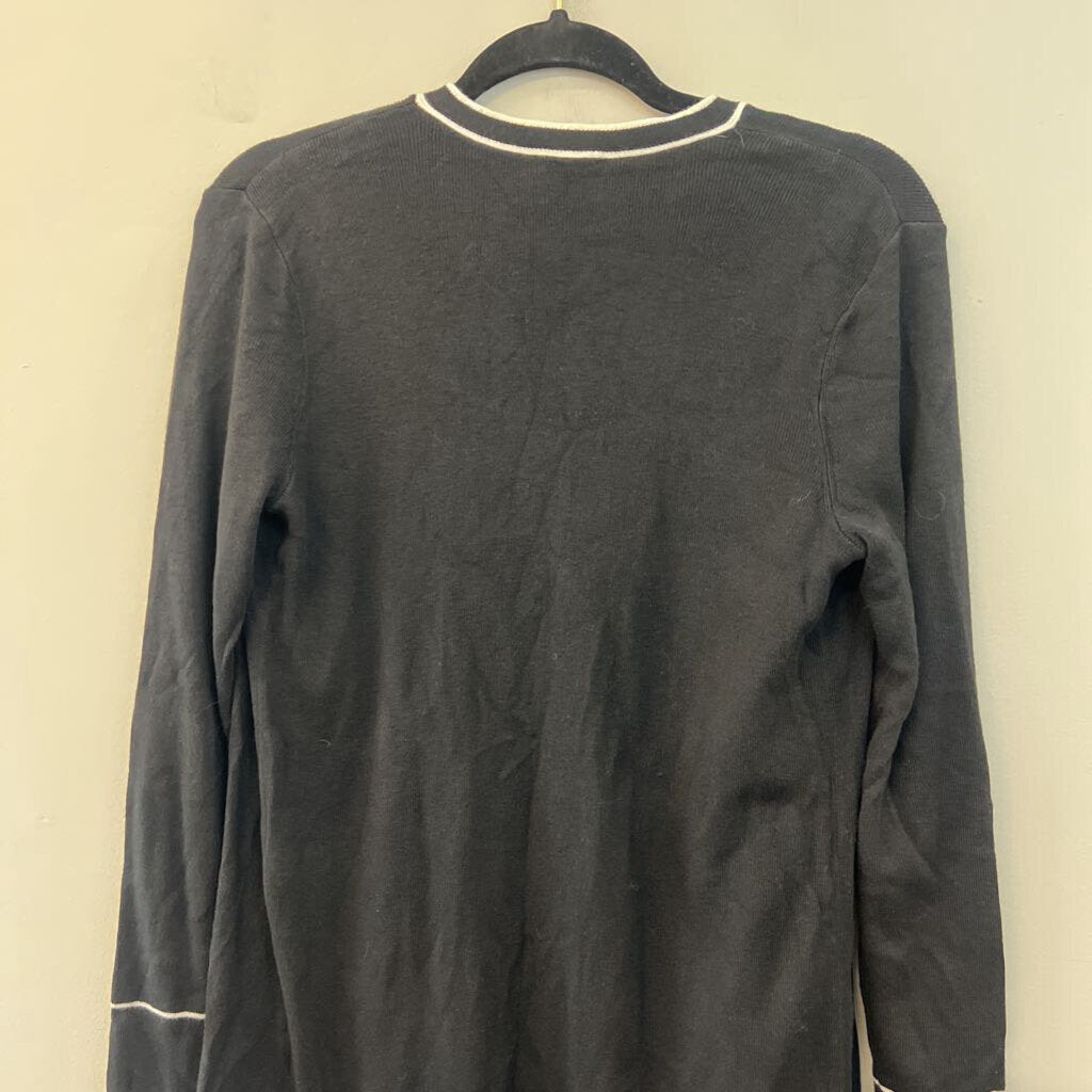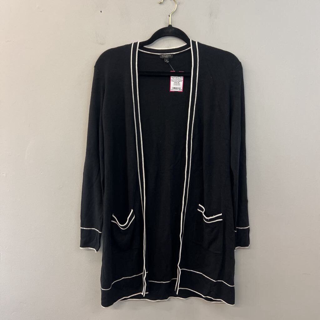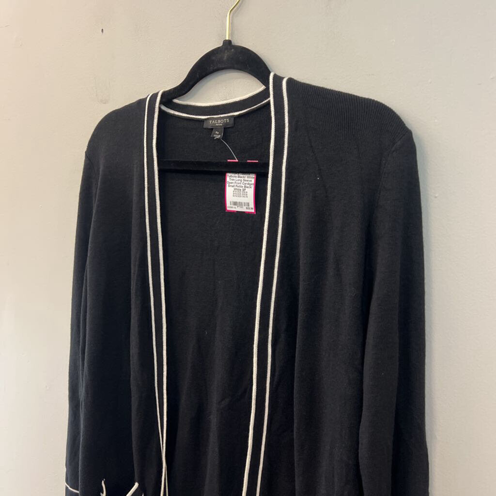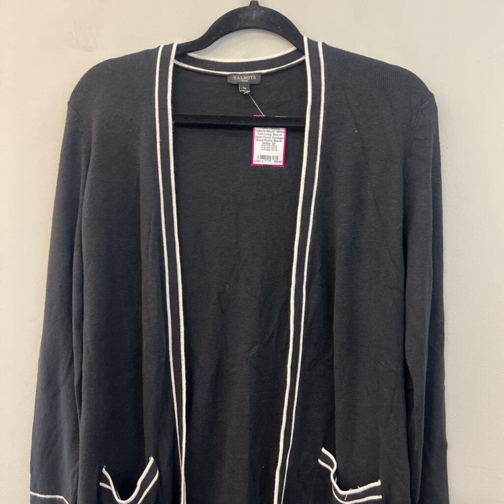 Talbots Black/ Whtie Trim Long Sleeve Open Front Cardigan Small Petite