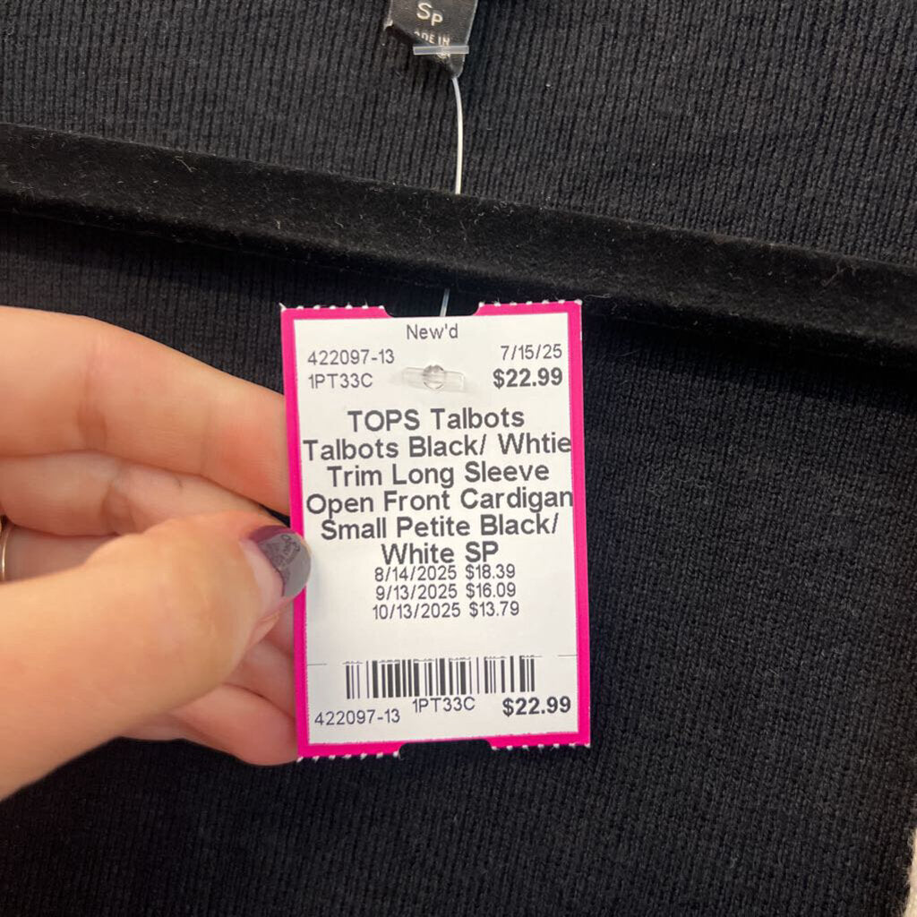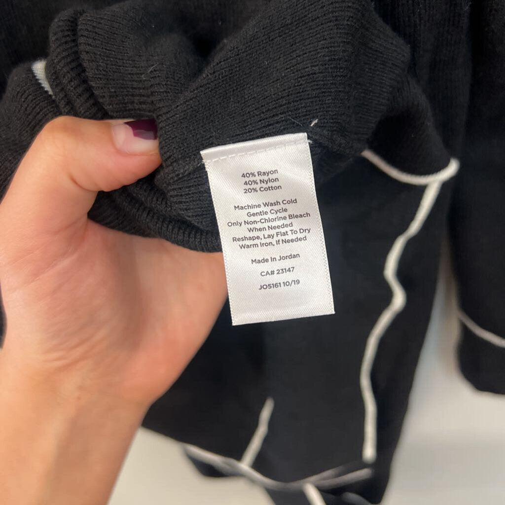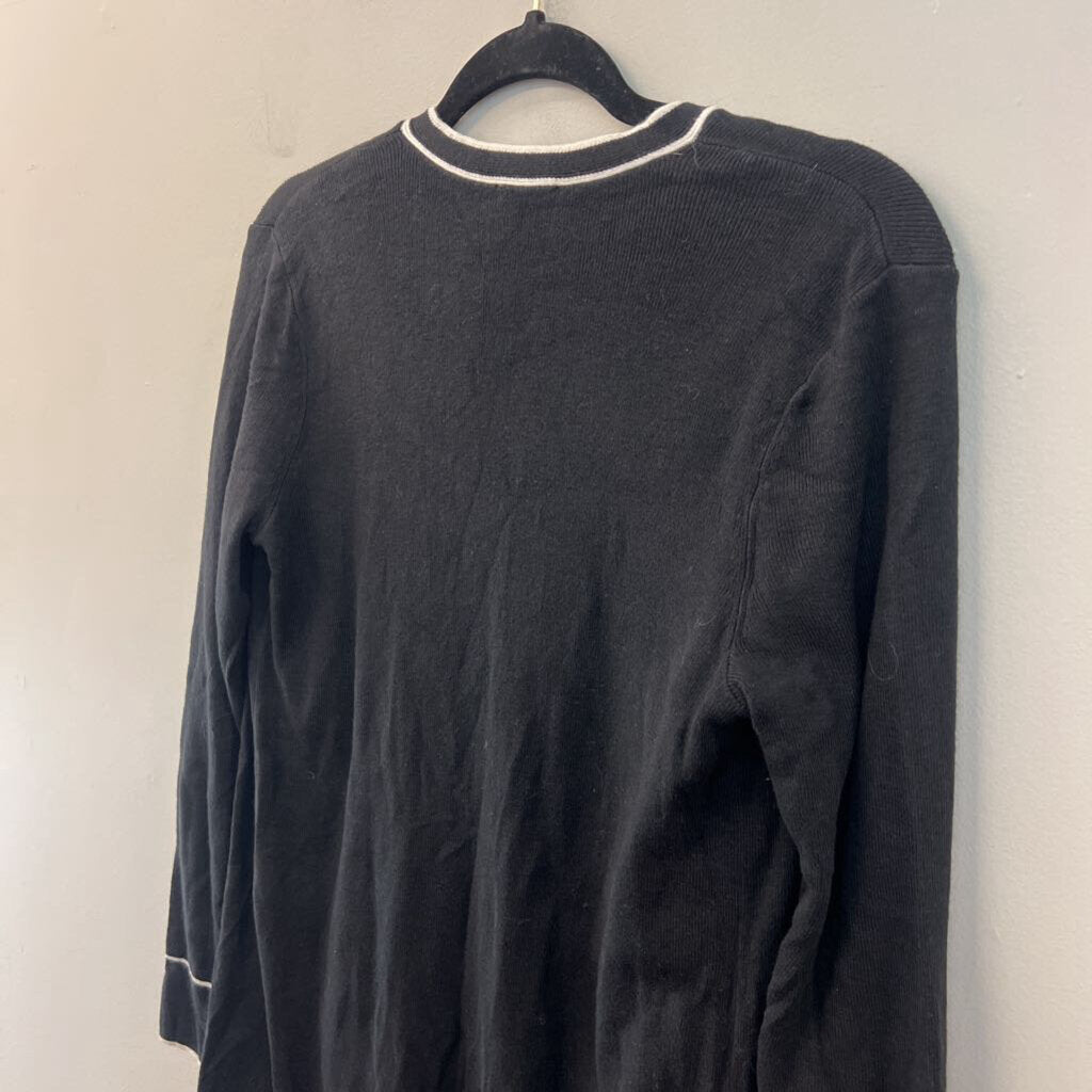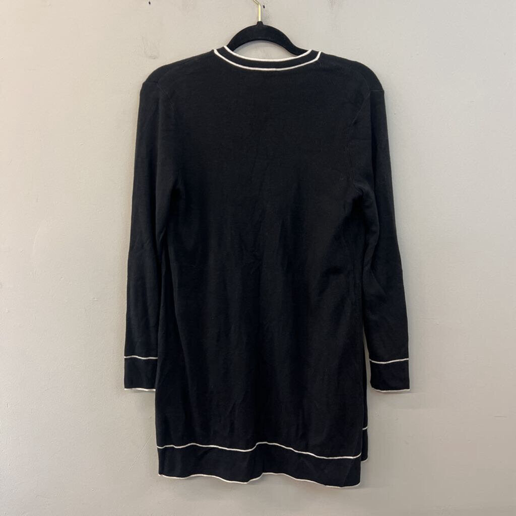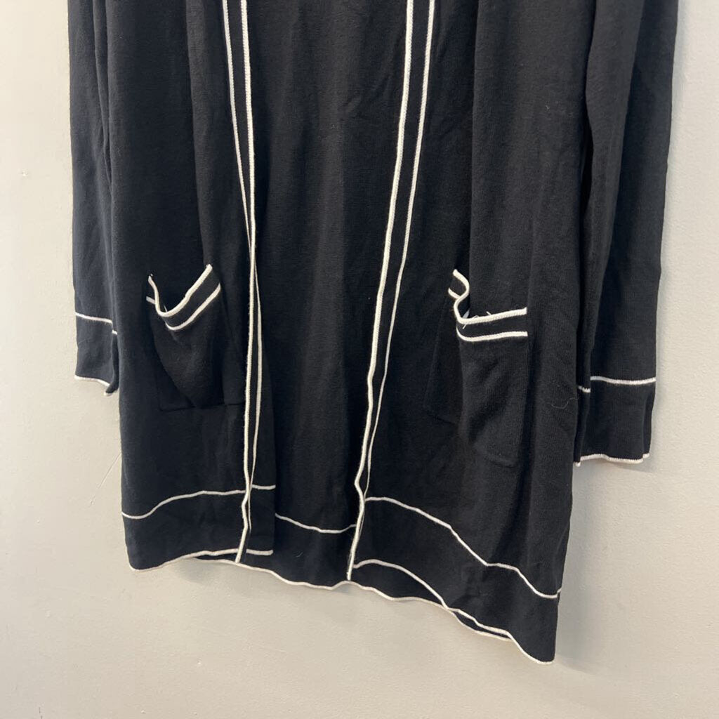 Talbots Black/ Whtie Trim Long Sleeve Open Front Cardigan Small Petite
