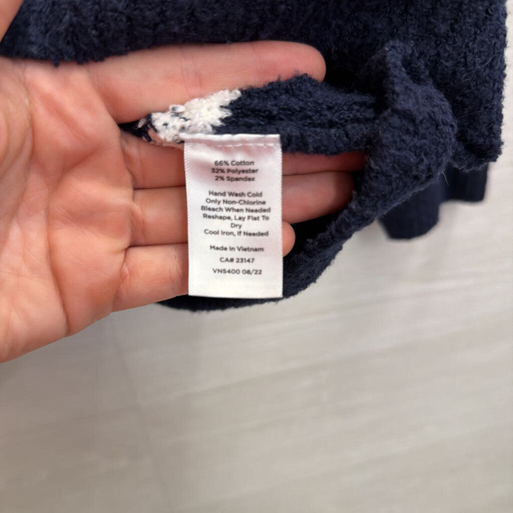 Talbots Navy/ White Knit Striped Quarter Zip Sweater Large