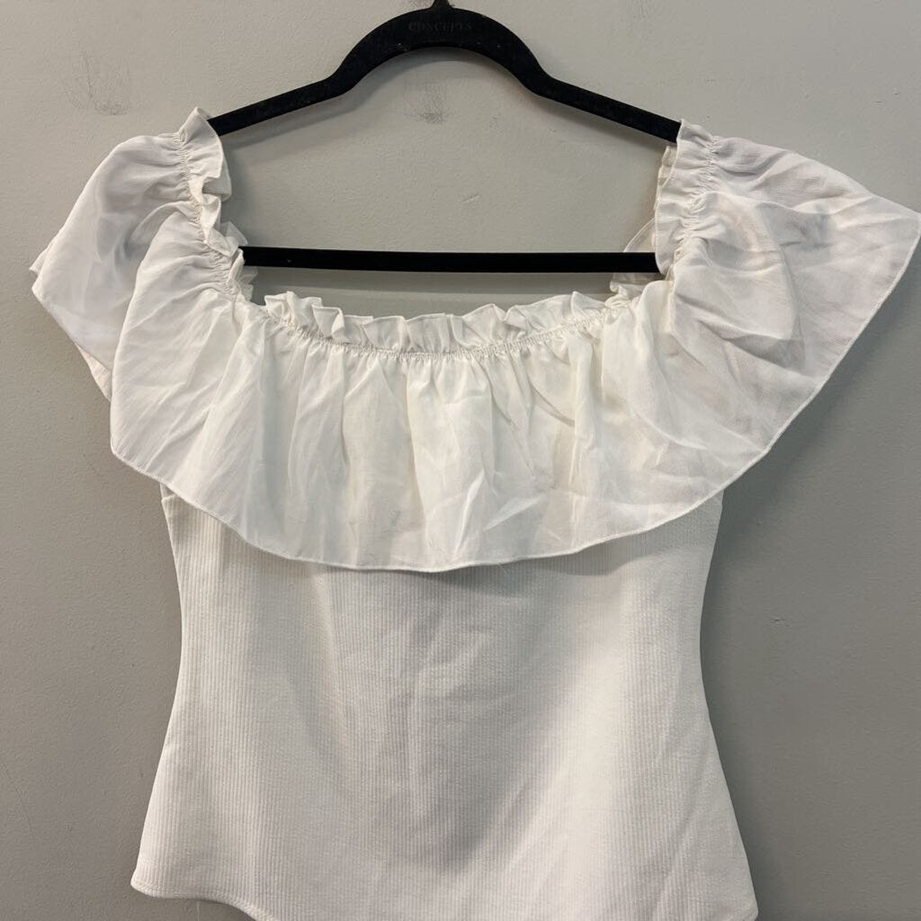 TCEC White Ruffle Off Shoulder Bodysuit Top Large