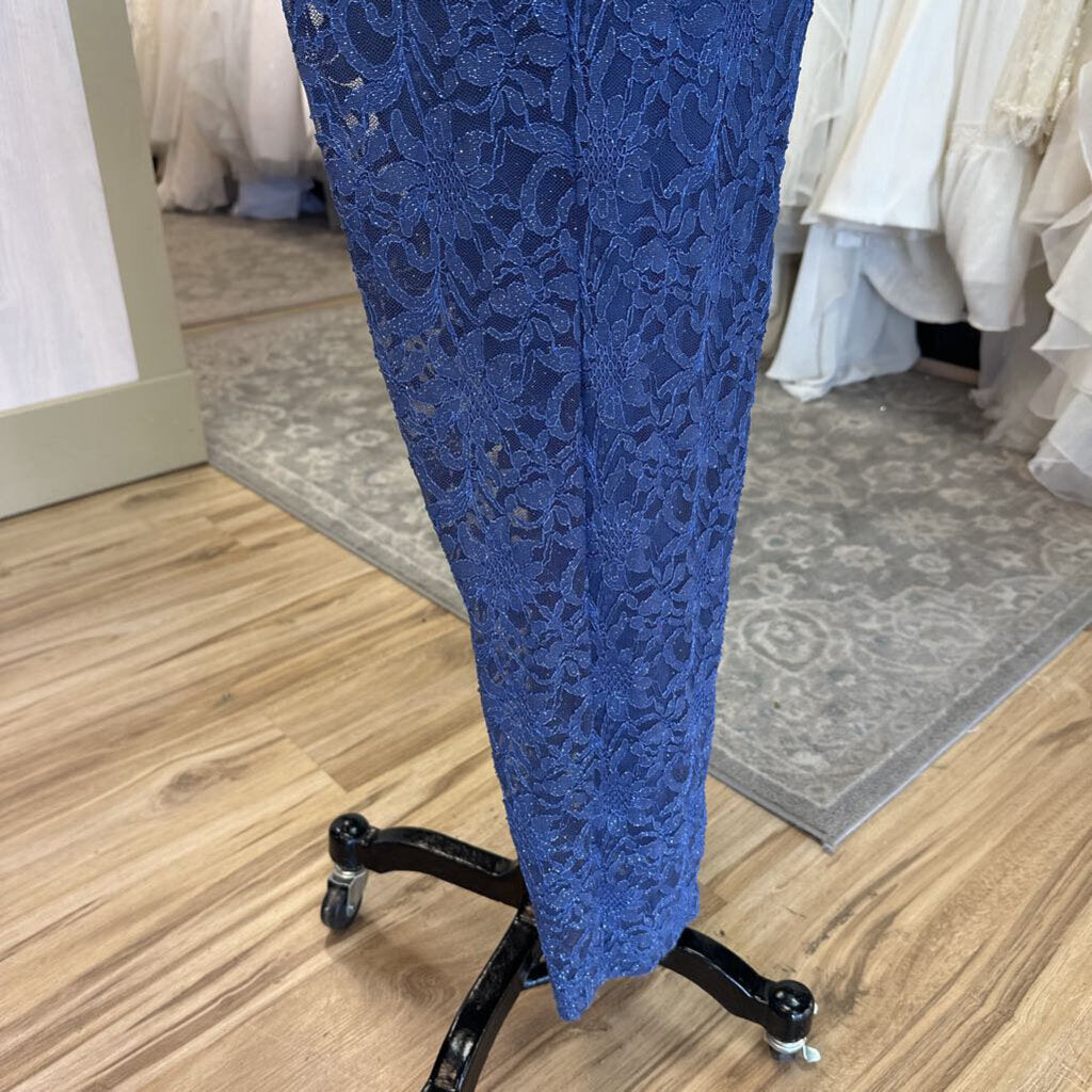 Teeze Me Blue Sparkle Lace Fitted Side Slit Long Formal Dress 1/2