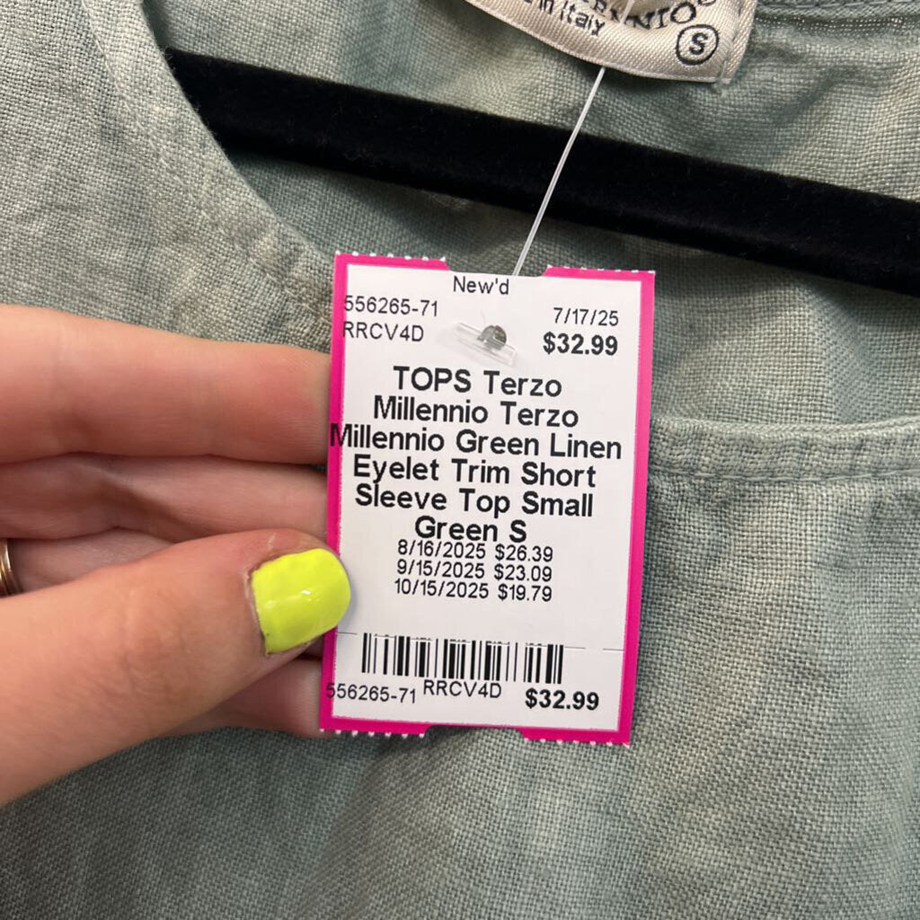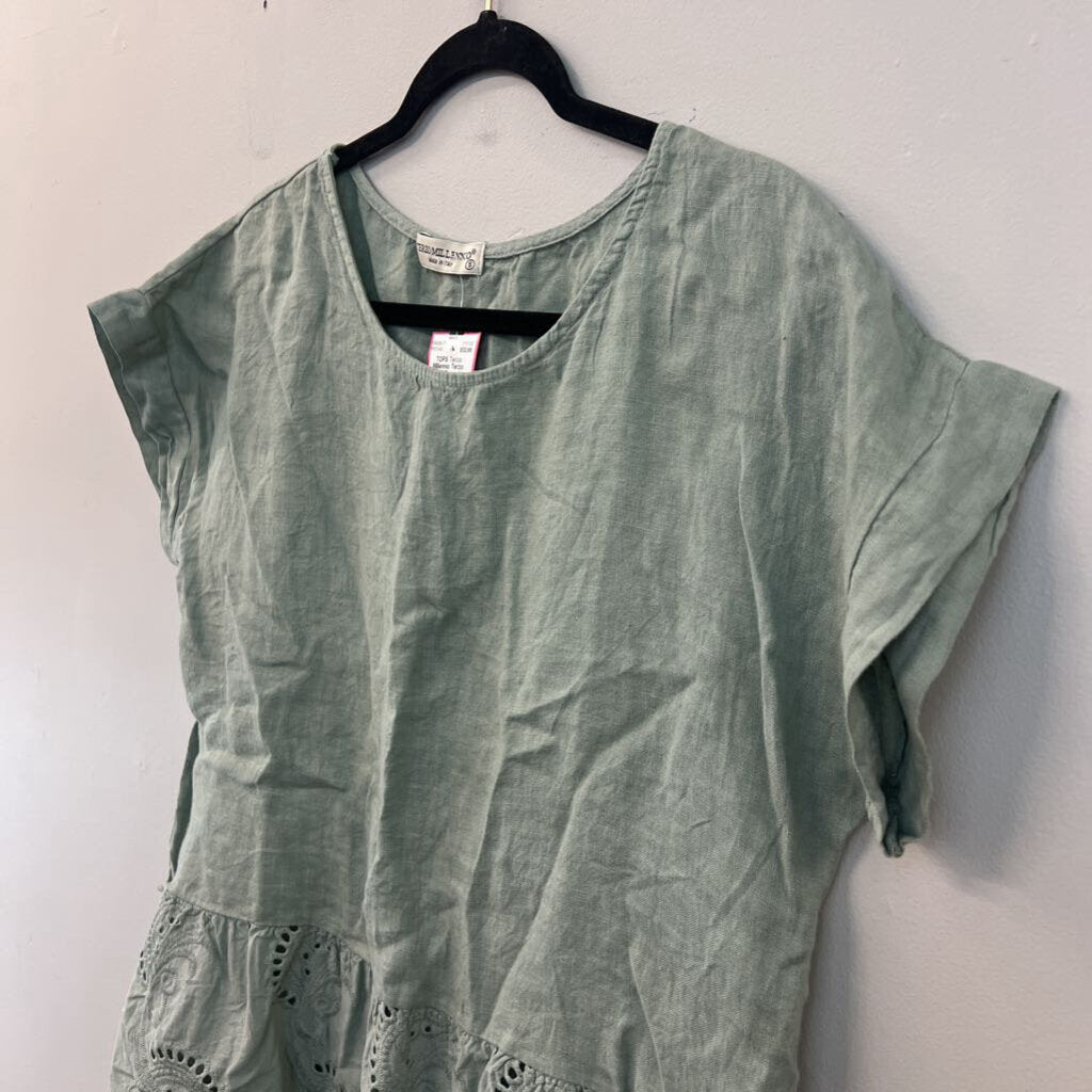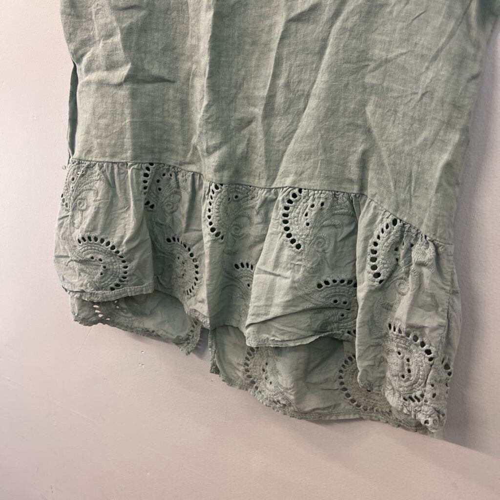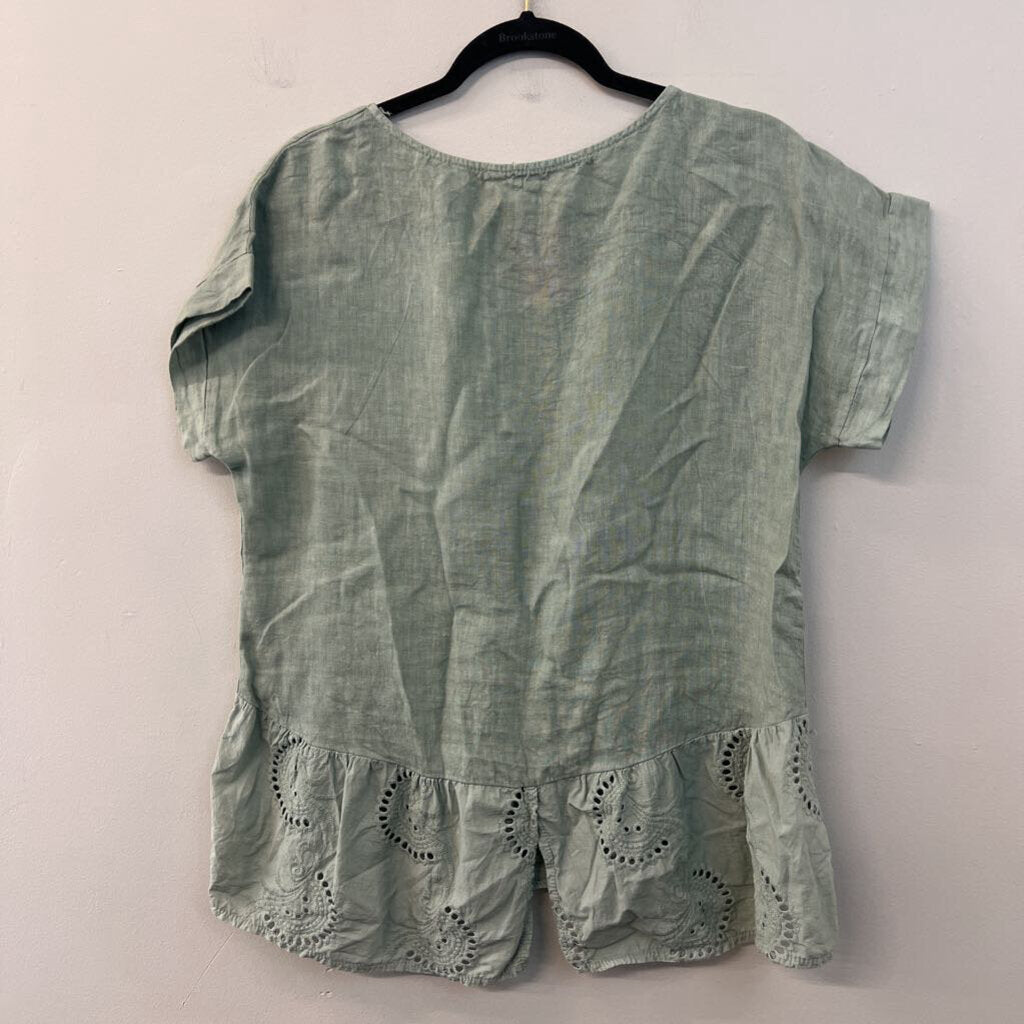 Terzo Millennio Green Linen Eyelet Trim Short Sleeve Top Small