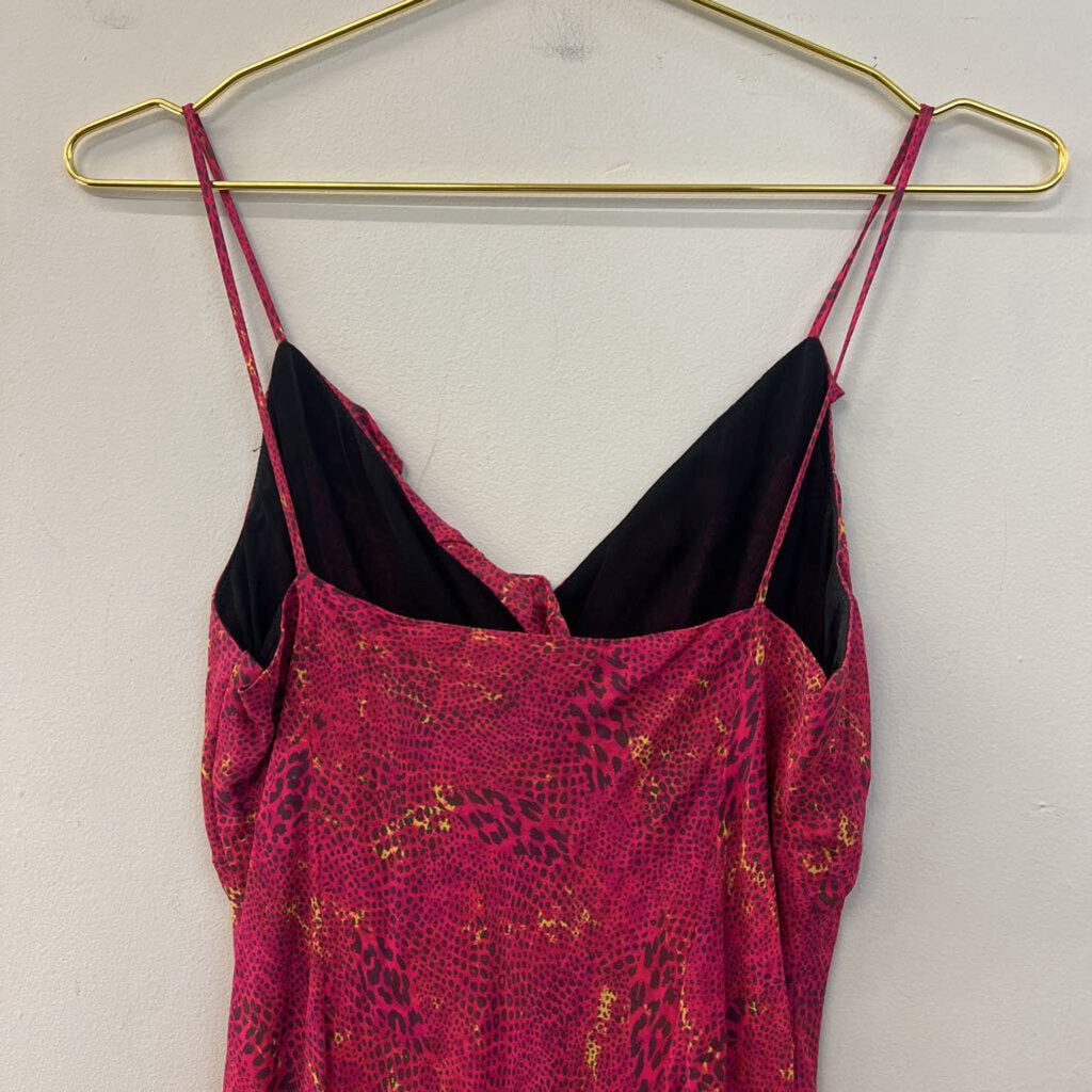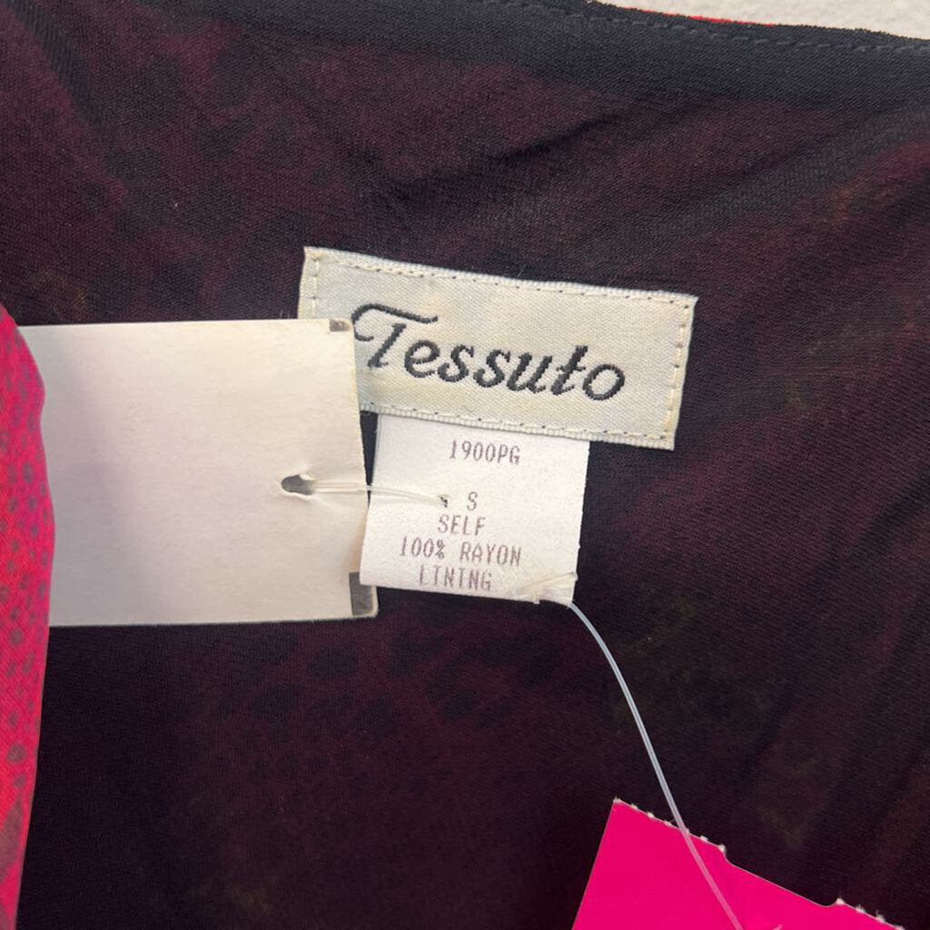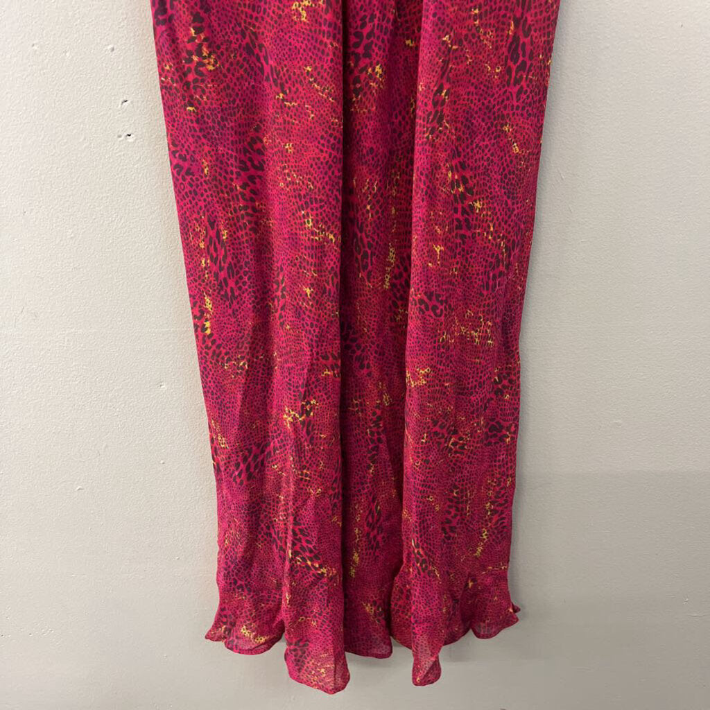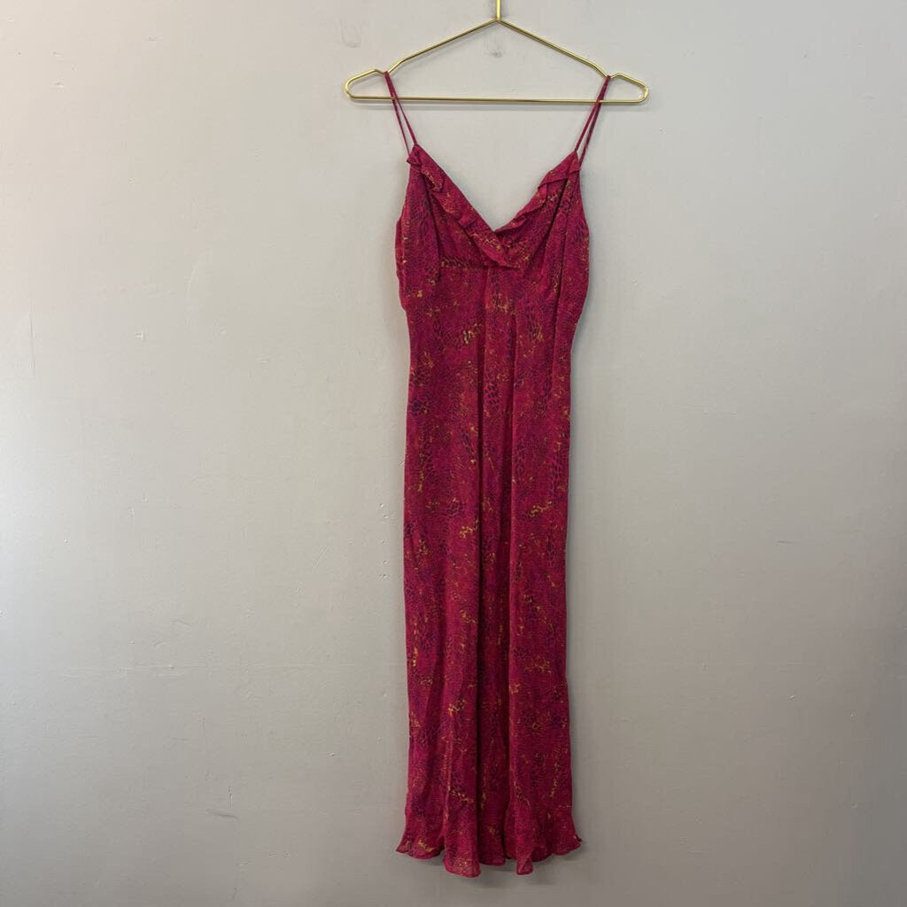 Tessuto Pink Print Ruffle Detail Midi Dress Small