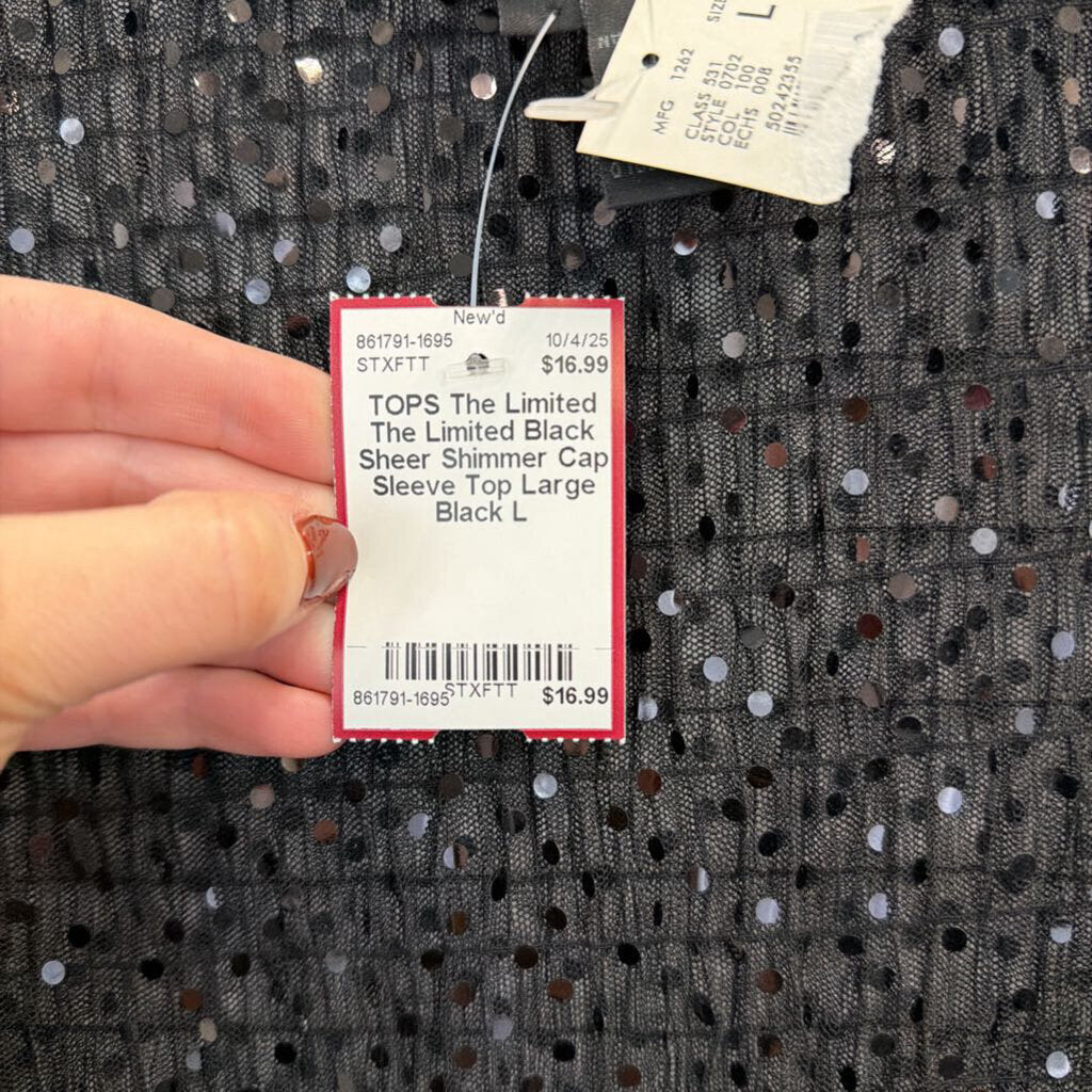 The Limited Black Sheer Shimmer Cap Sleeve Top Large