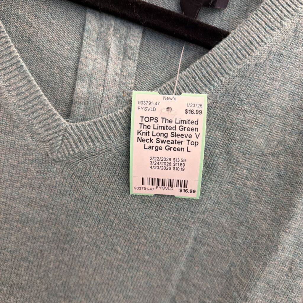 The Limited Green Knit Long Sleeve V Neck Sweater Top Large
