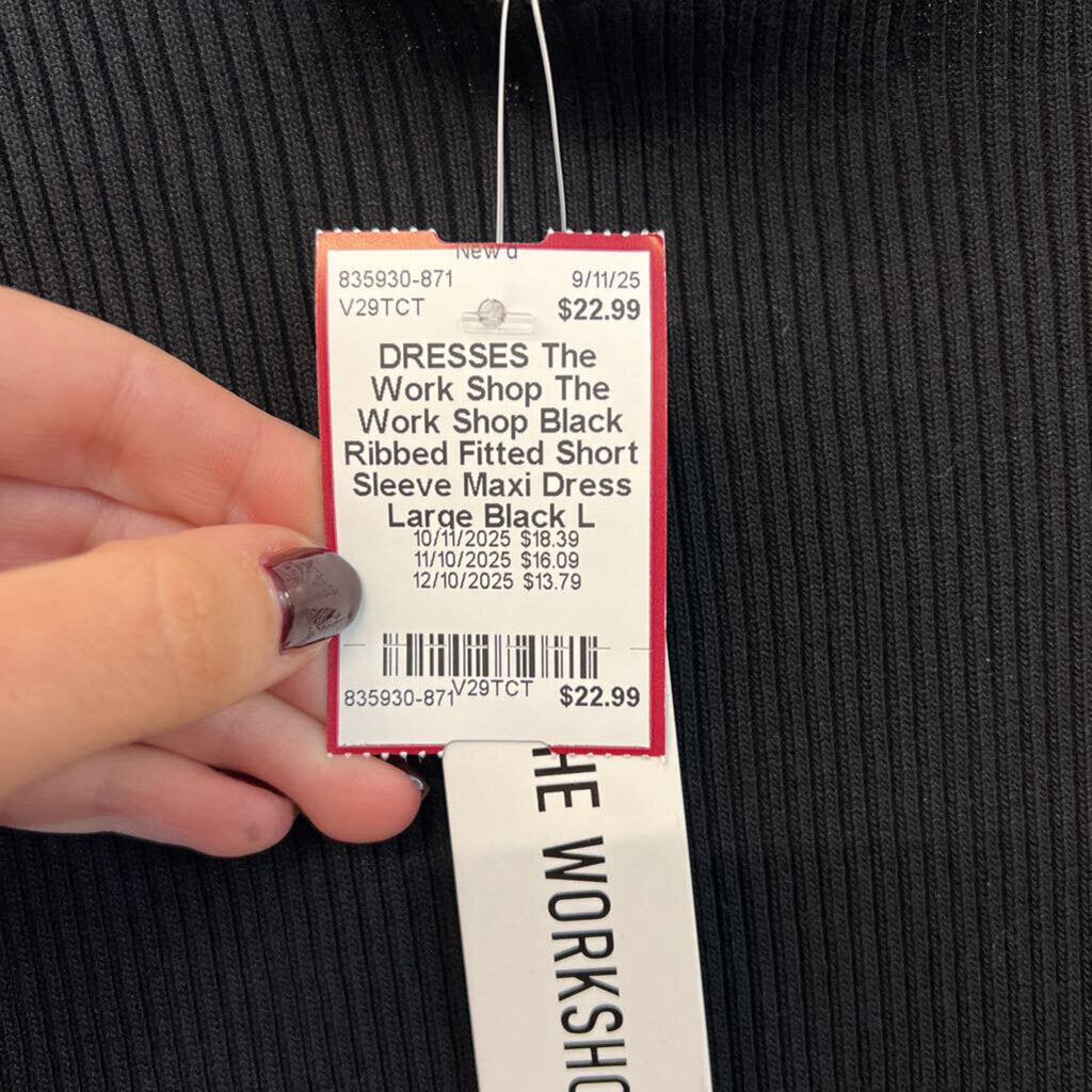 The Work Shop Black Ribbed Fitted Short Sleeve Maxi Dress Large